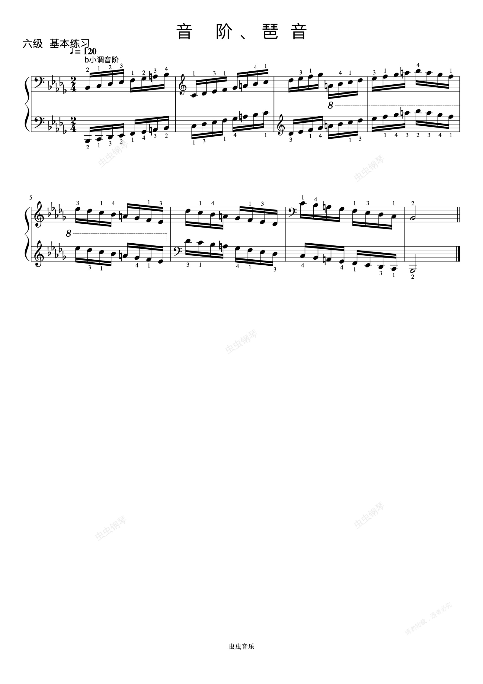 钢琴谱:6级 降b小调音阶《中国院钢琴考级曲目》