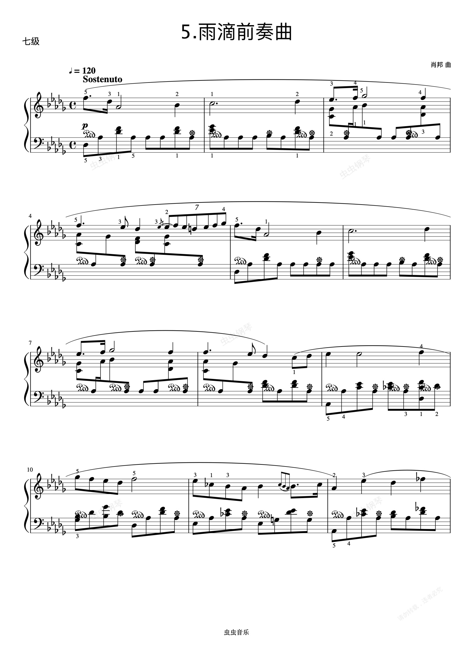 钢琴谱:7级 雨滴前奏曲《中国院钢琴考级曲目》