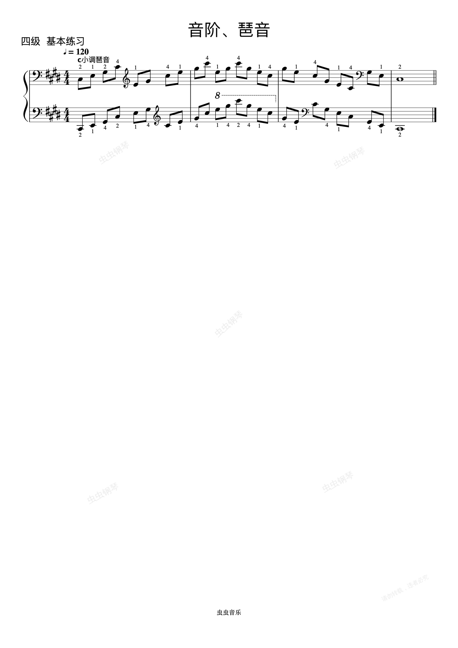 钢琴谱:4级 升c小调琶音《中国院钢琴考级曲目》