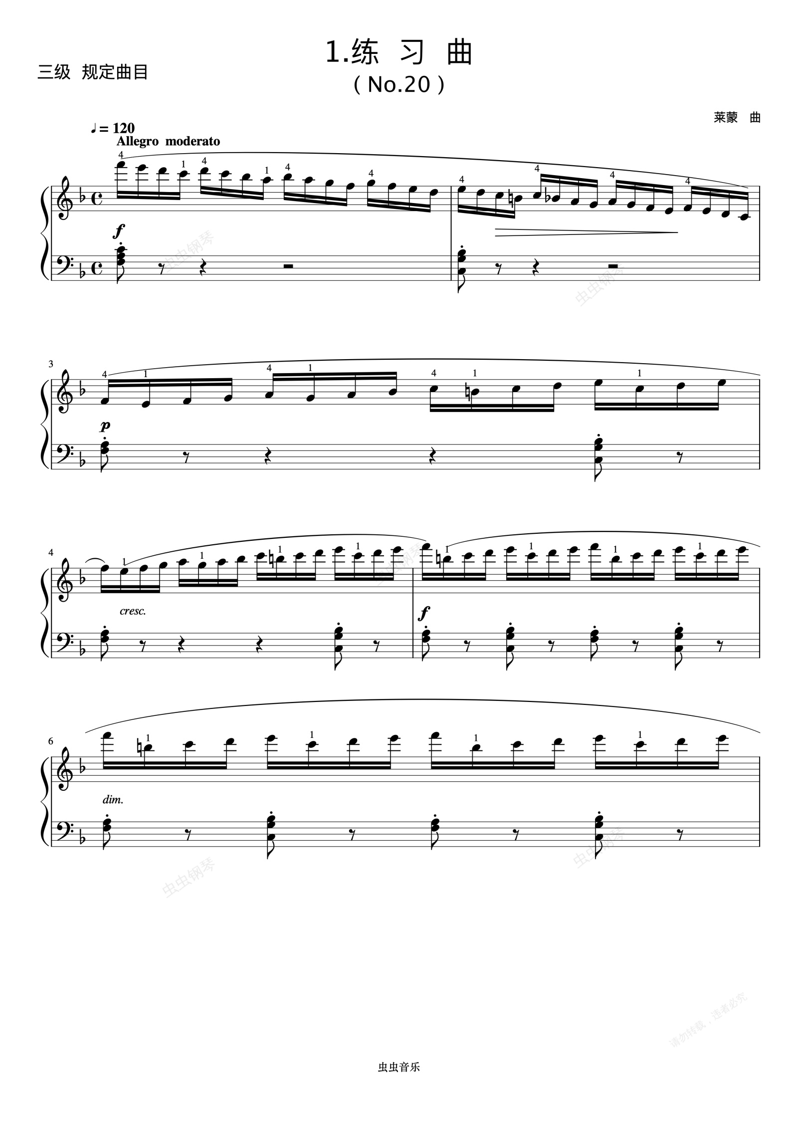 钢琴谱:3级 练习曲 No.20《中国院钢琴考级曲目》