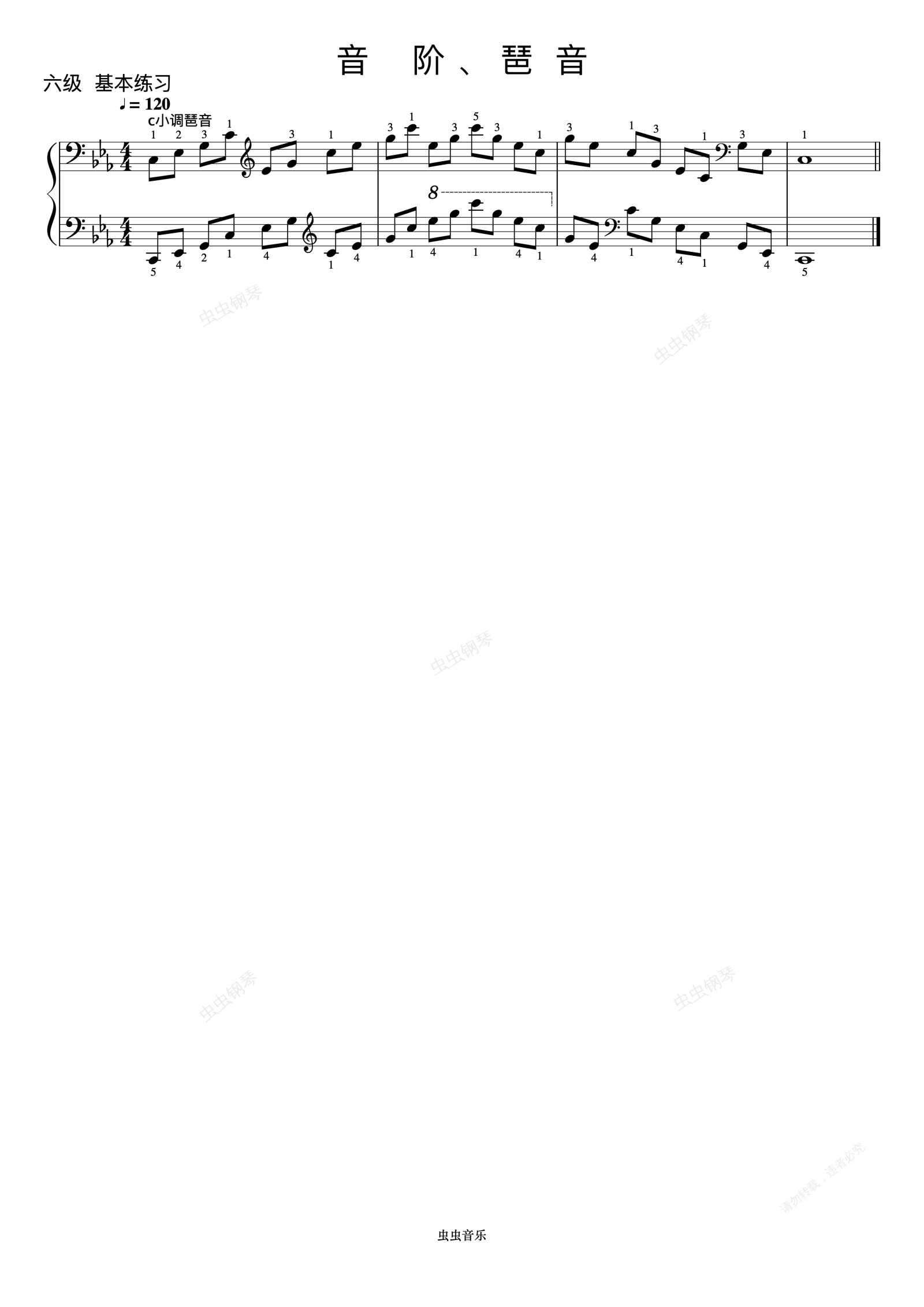 钢琴谱:6级 c小调琶音《中国院钢琴考级曲目》