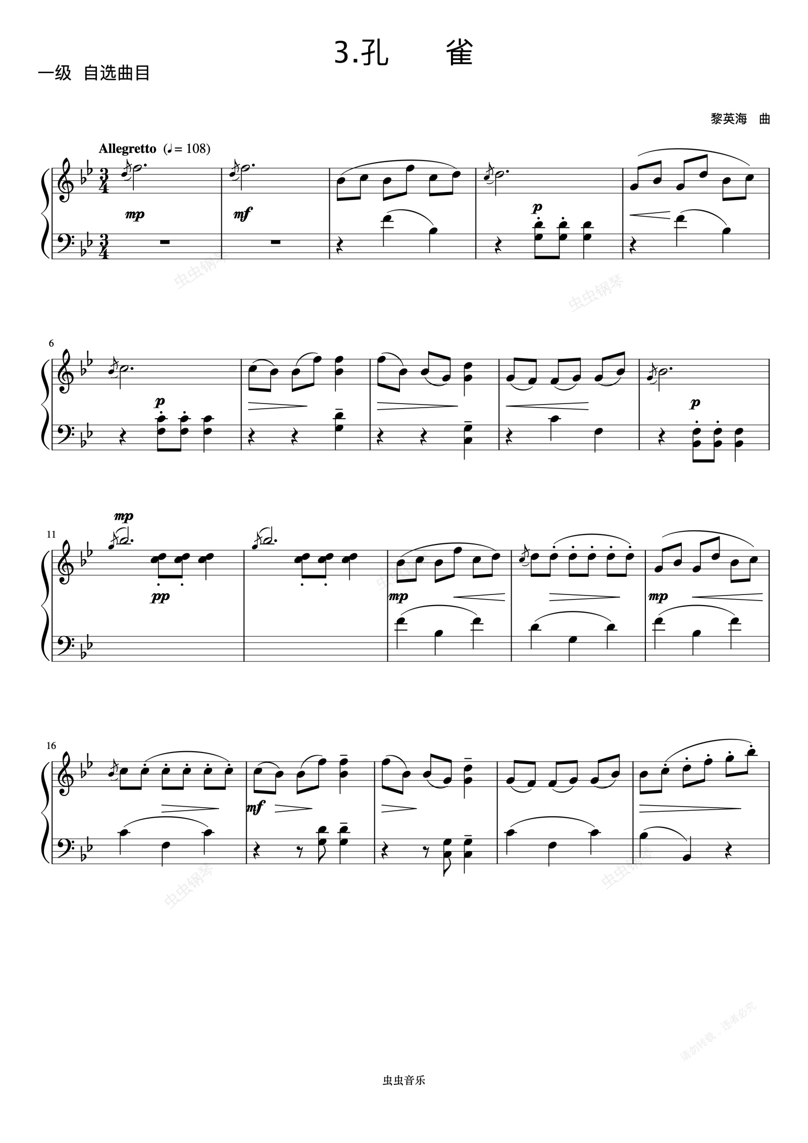 钢琴谱:1级 孔雀《中国院钢琴考级曲目》