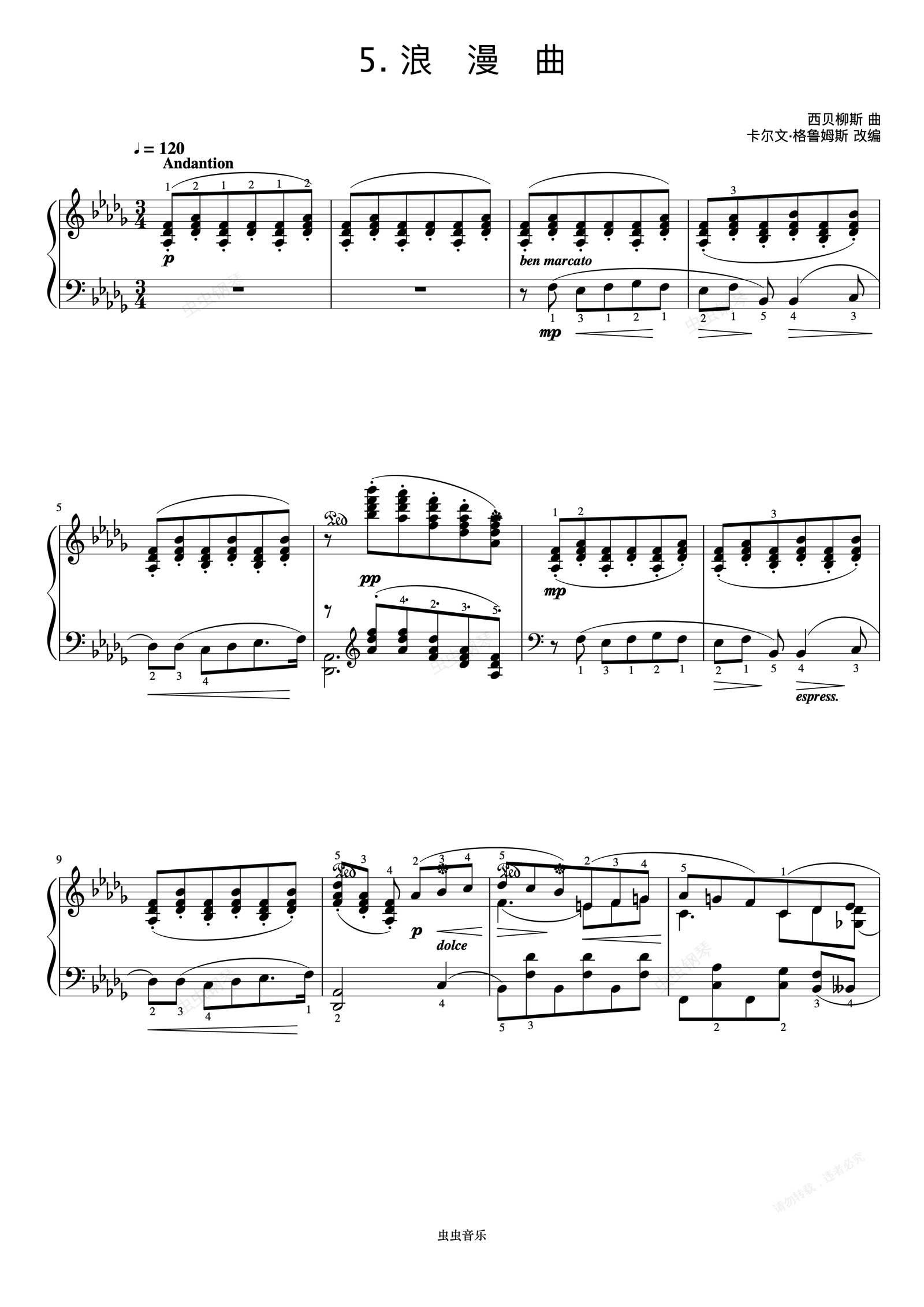 钢琴谱:8级 浪漫曲《中国院钢琴考级曲目》
