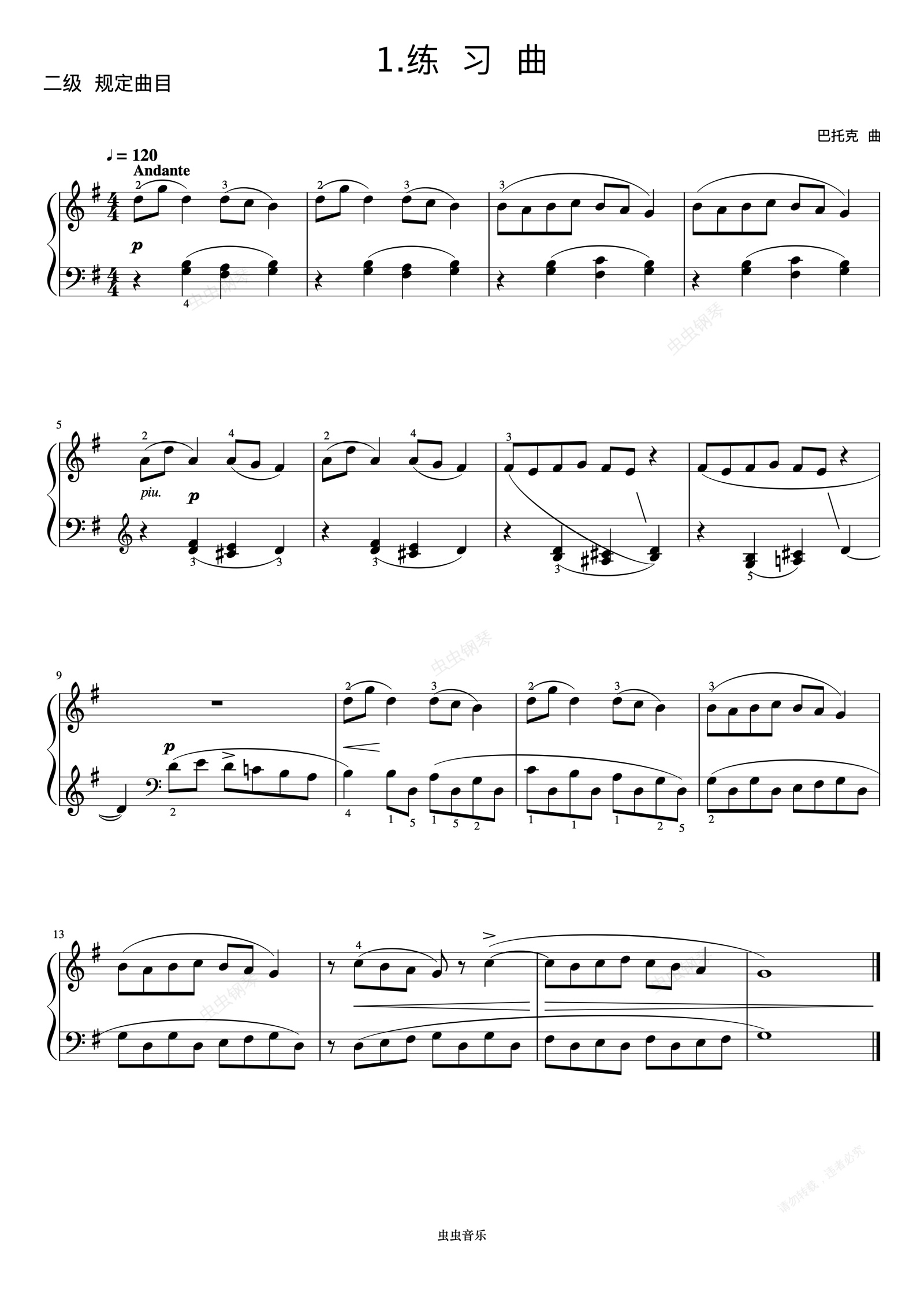 钢琴谱:2级 练习曲《中国院钢琴考级曲目》