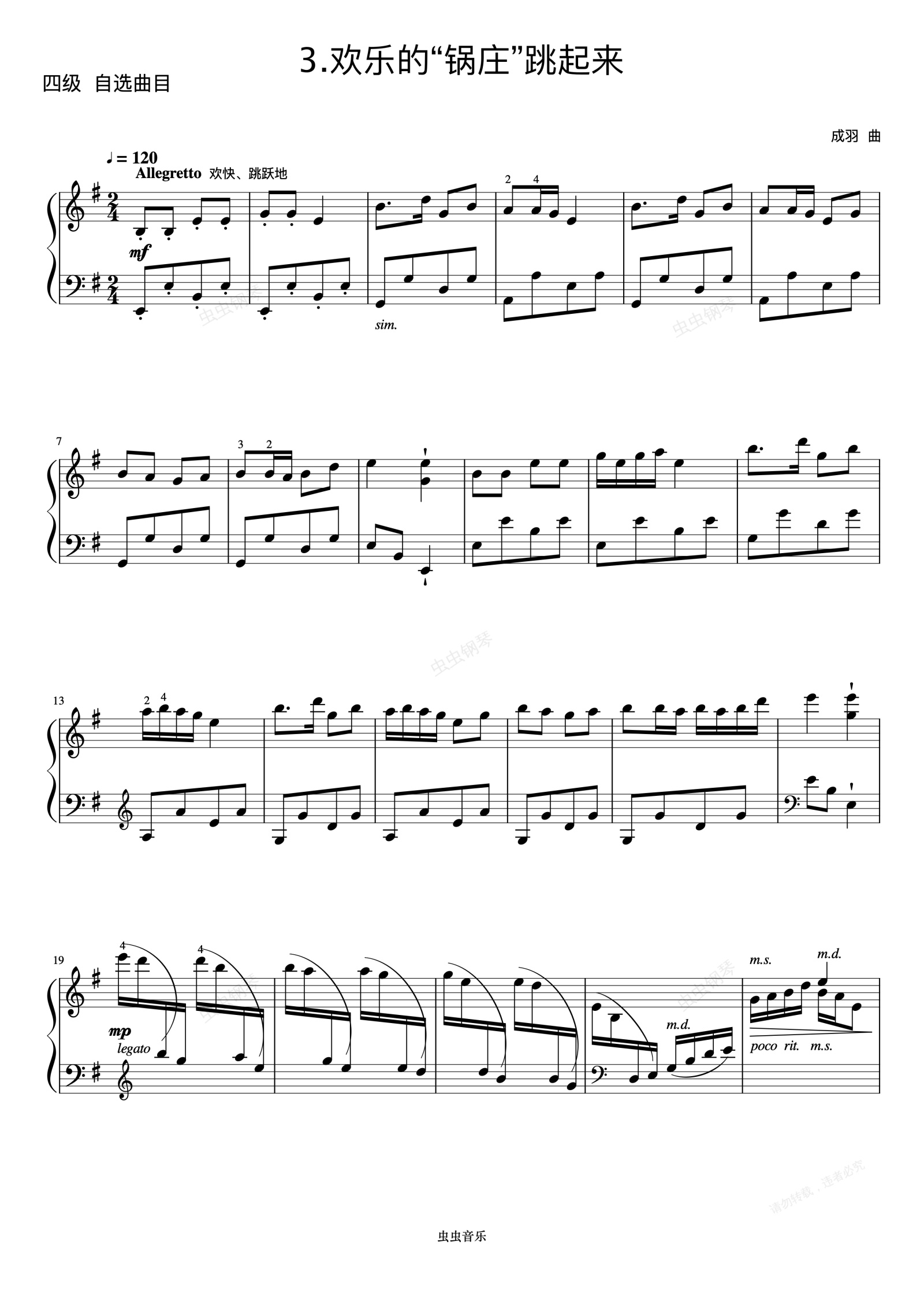 钢琴谱:4级 欢乐的锅庄跳起来《中国院钢琴考级曲目》