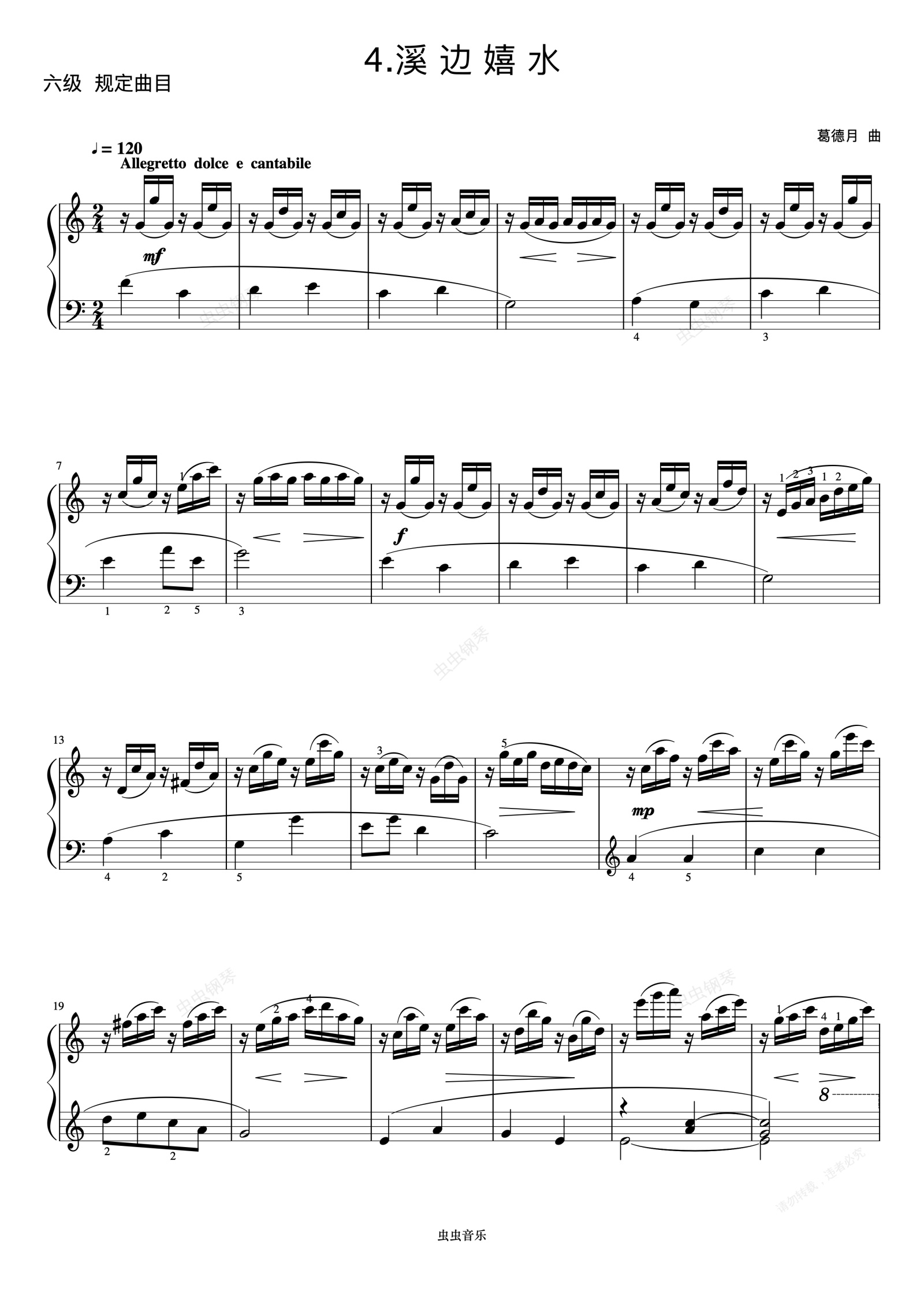 钢琴谱:6级 溪边嬉水《中国院钢琴考级曲目》