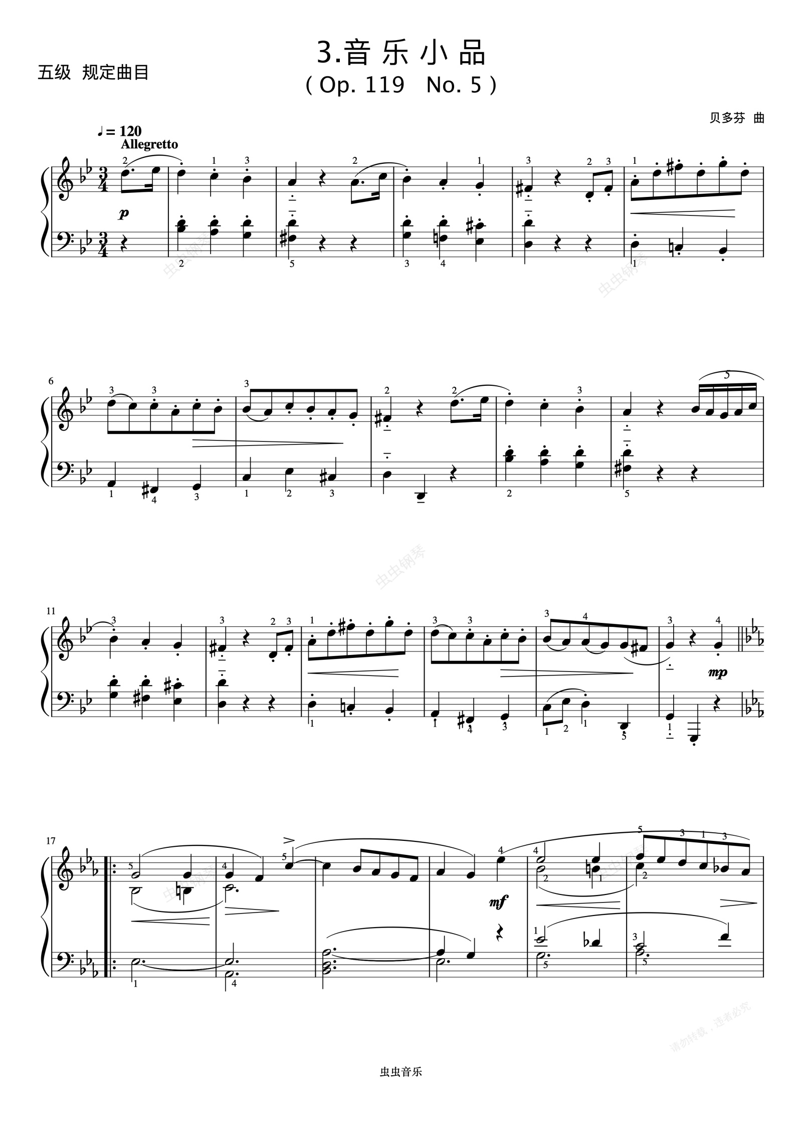 钢琴谱:5级 音乐小品(Op.119 No.5)《中国院钢琴考级曲目》