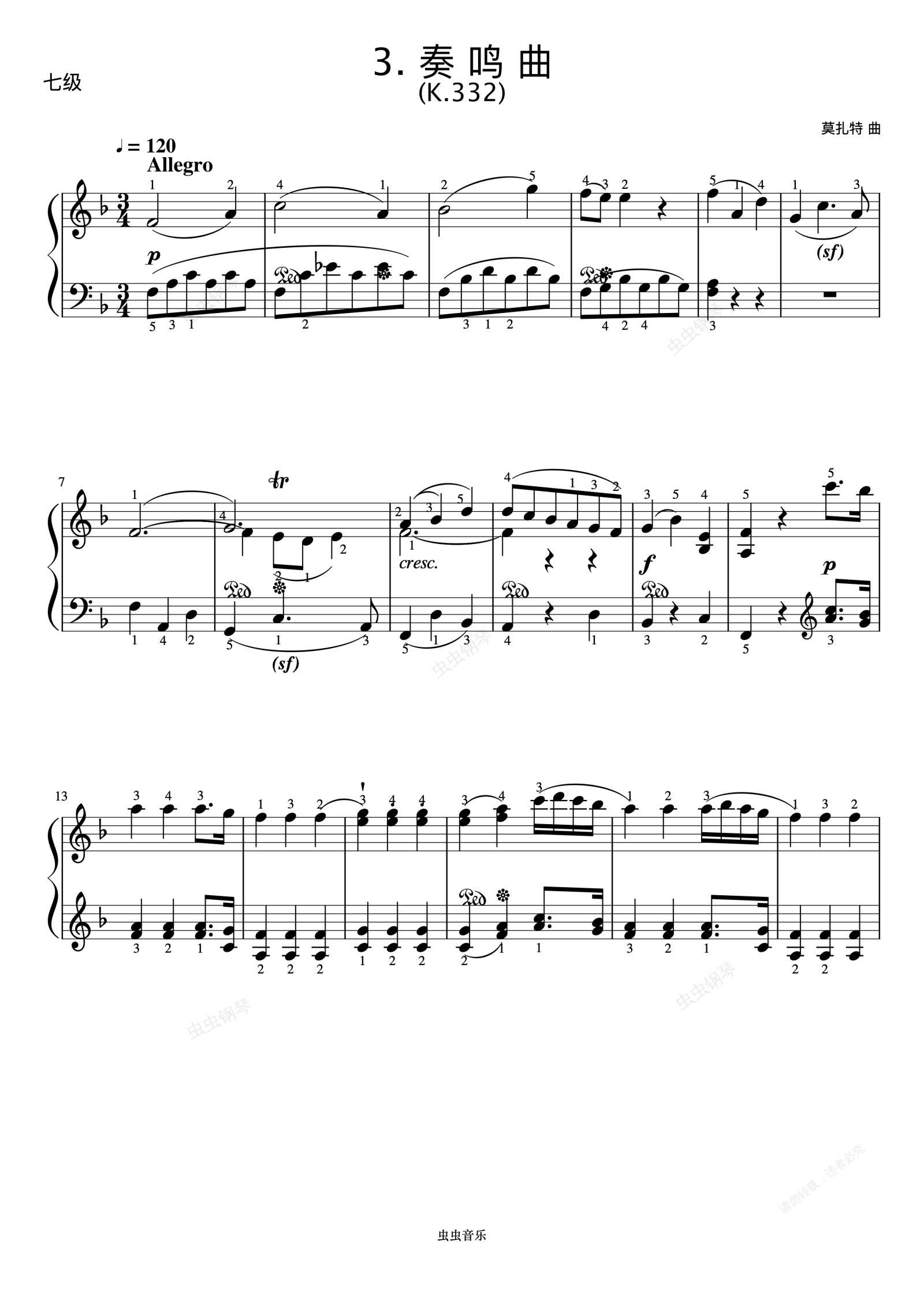 钢琴谱:7级 奏鸣曲(莫扎特)《中国院钢琴考级曲目》