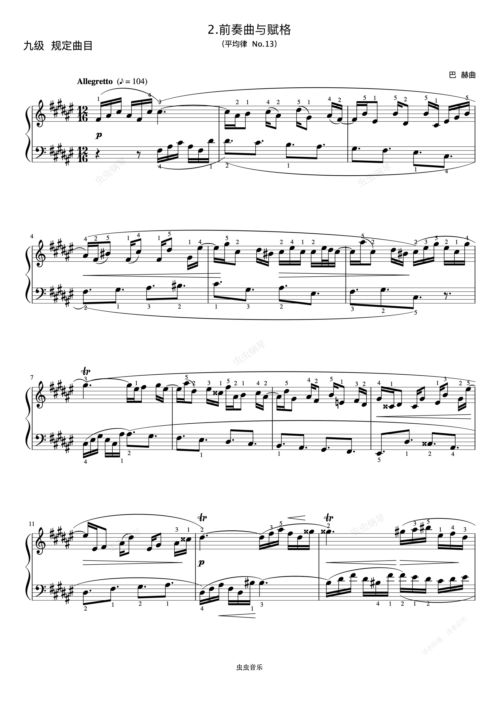 钢琴谱:9级 前奏曲与赋格(No.13)《中国院钢琴考级曲目》