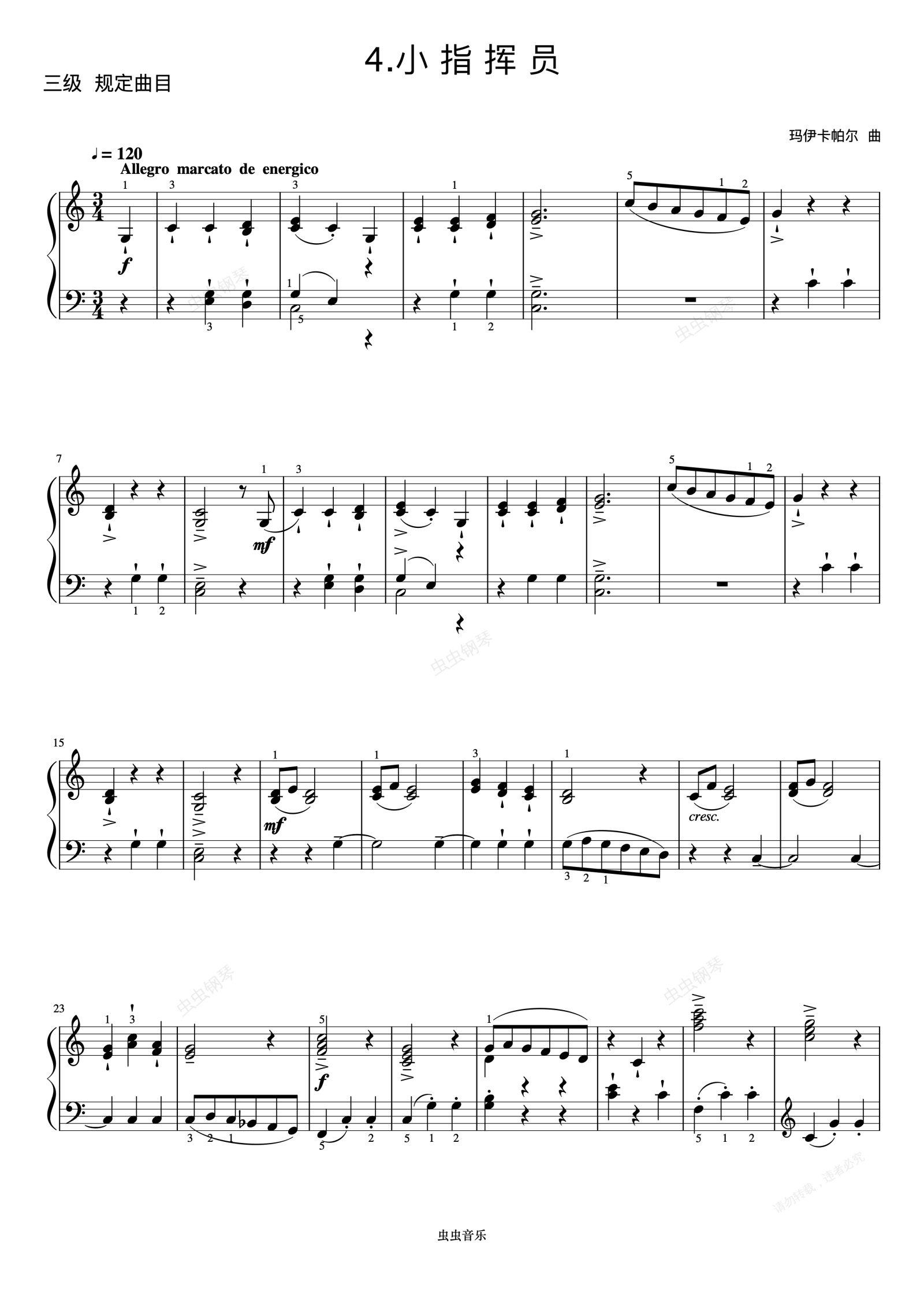 钢琴谱:3级 小指挥员《中国院钢琴考级曲目》
