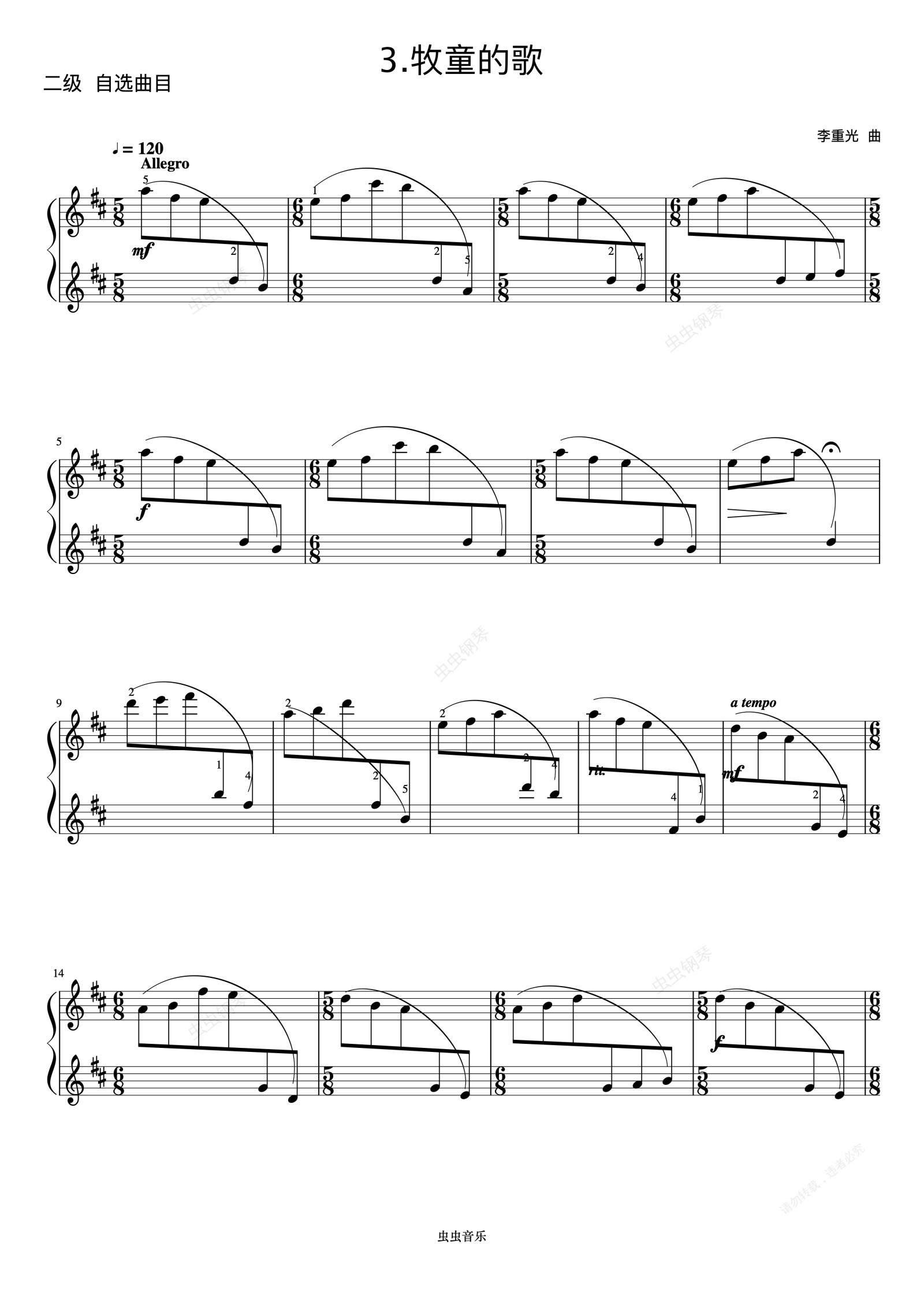 钢琴谱:2级 牧童的歌《中国院钢琴考级曲目》