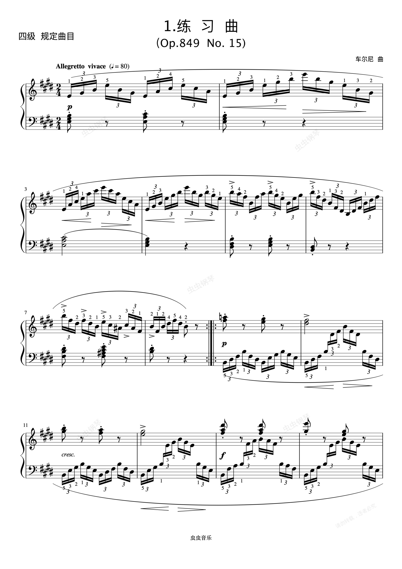 钢琴谱:4级 练习曲(Op.849 No.15)《中国院钢琴考级曲目》