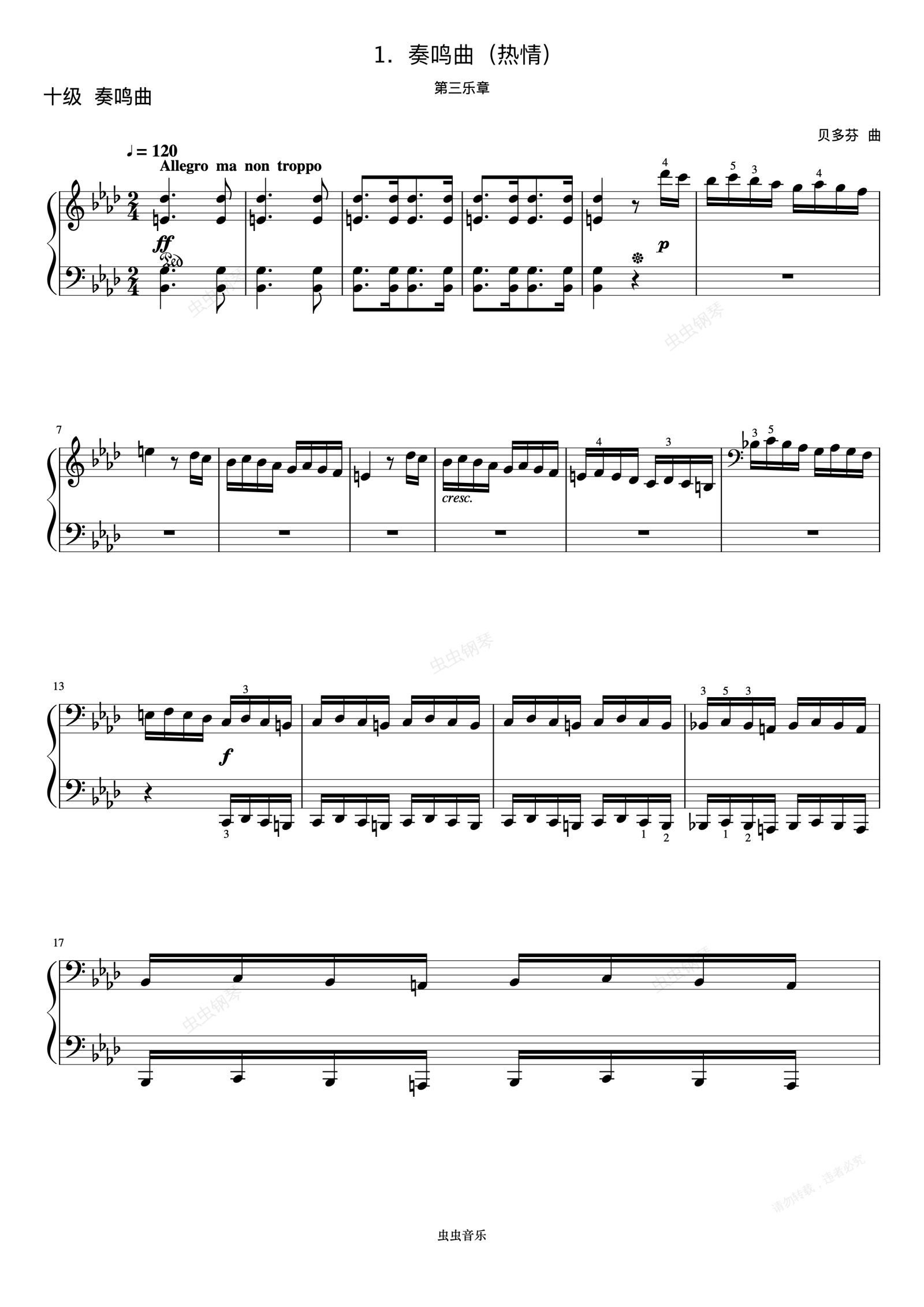 钢琴谱:10级 奏鸣曲(热情第三乐章)《中国院钢琴考级曲目》