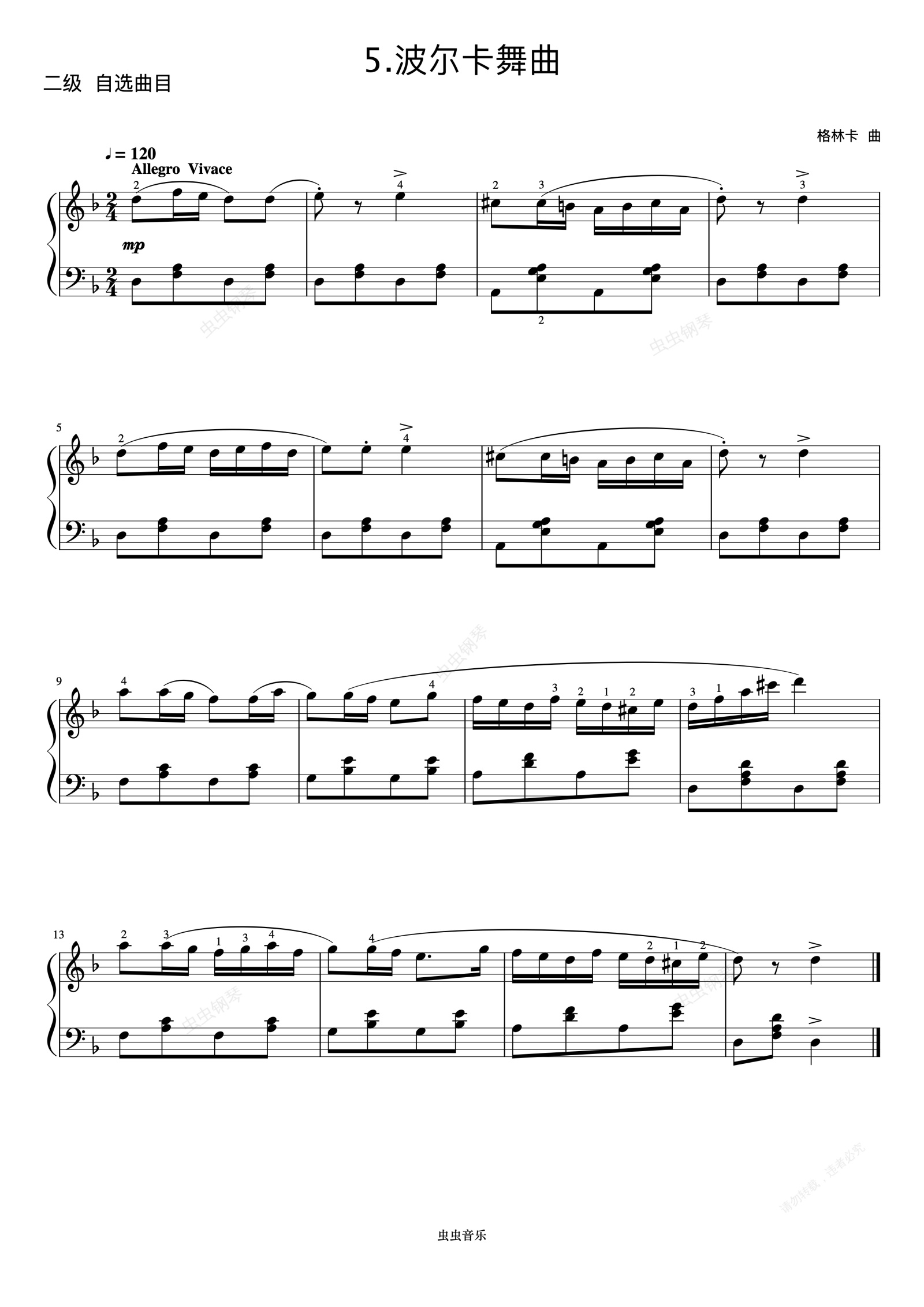 钢琴谱:2级 波尔卡舞曲《中国院钢琴考级曲目》