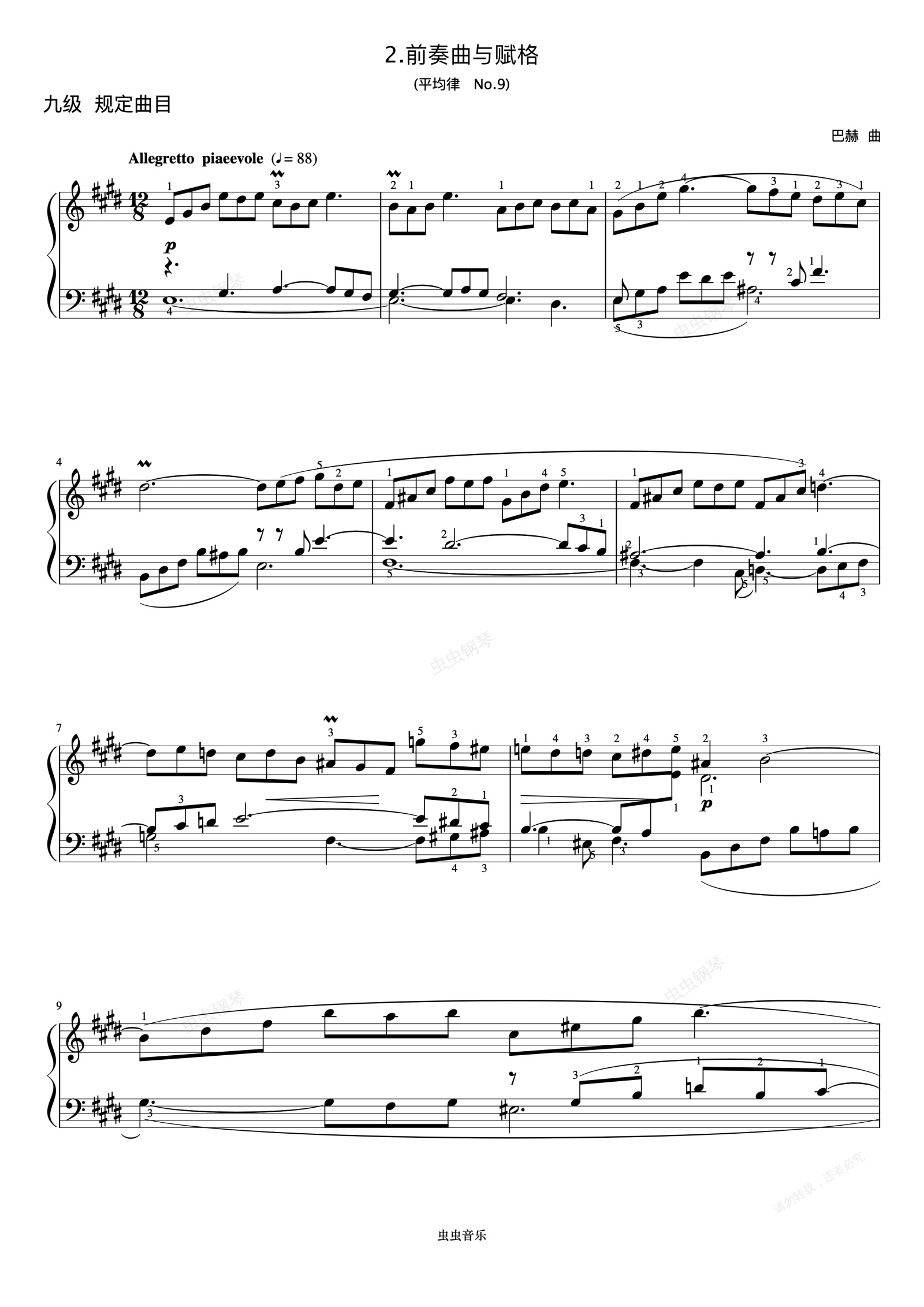 钢琴谱:9级 前奏曲与赋格(No.9)《中国院钢琴考级曲目》