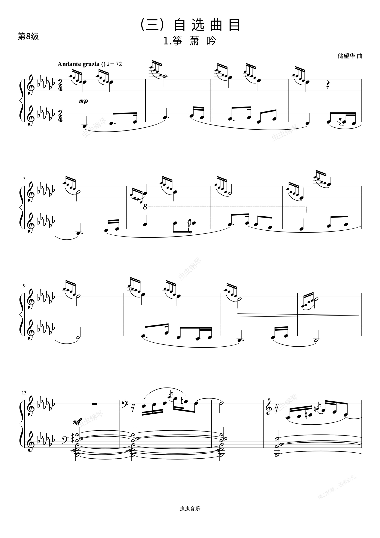 钢琴谱:8级 筝萧吟《中国院钢琴考级曲目》