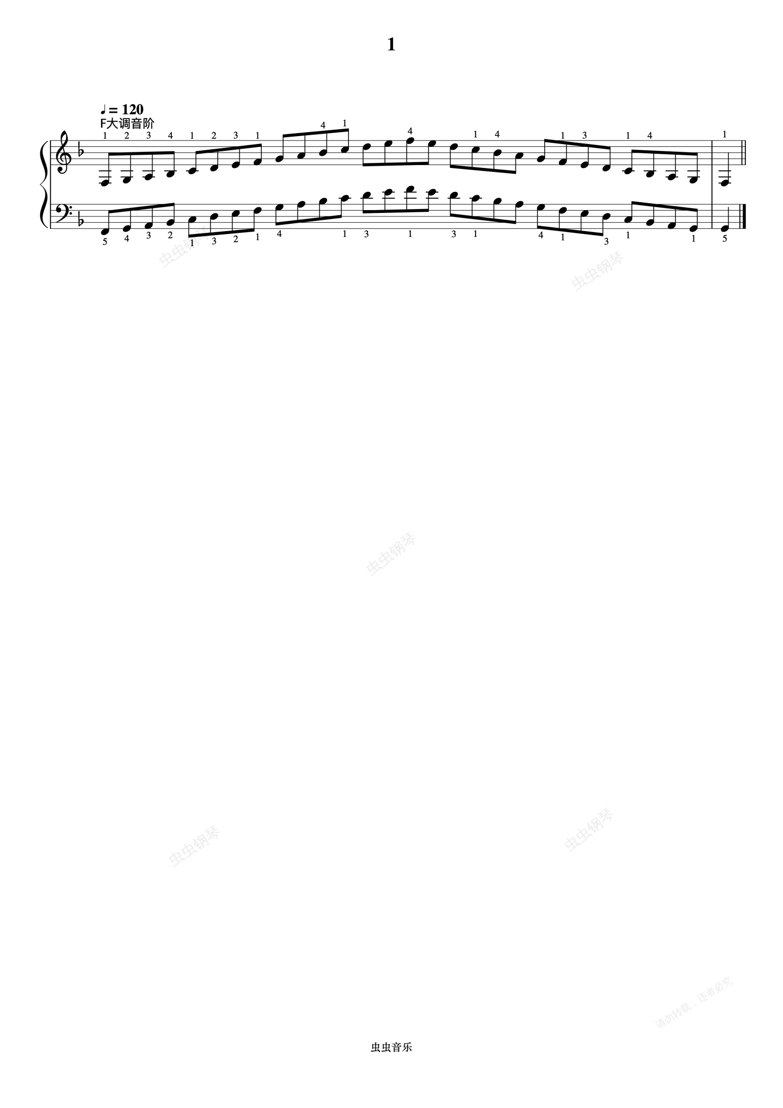 钢琴谱:1级 F大调音阶《中国院钢琴考级曲目》