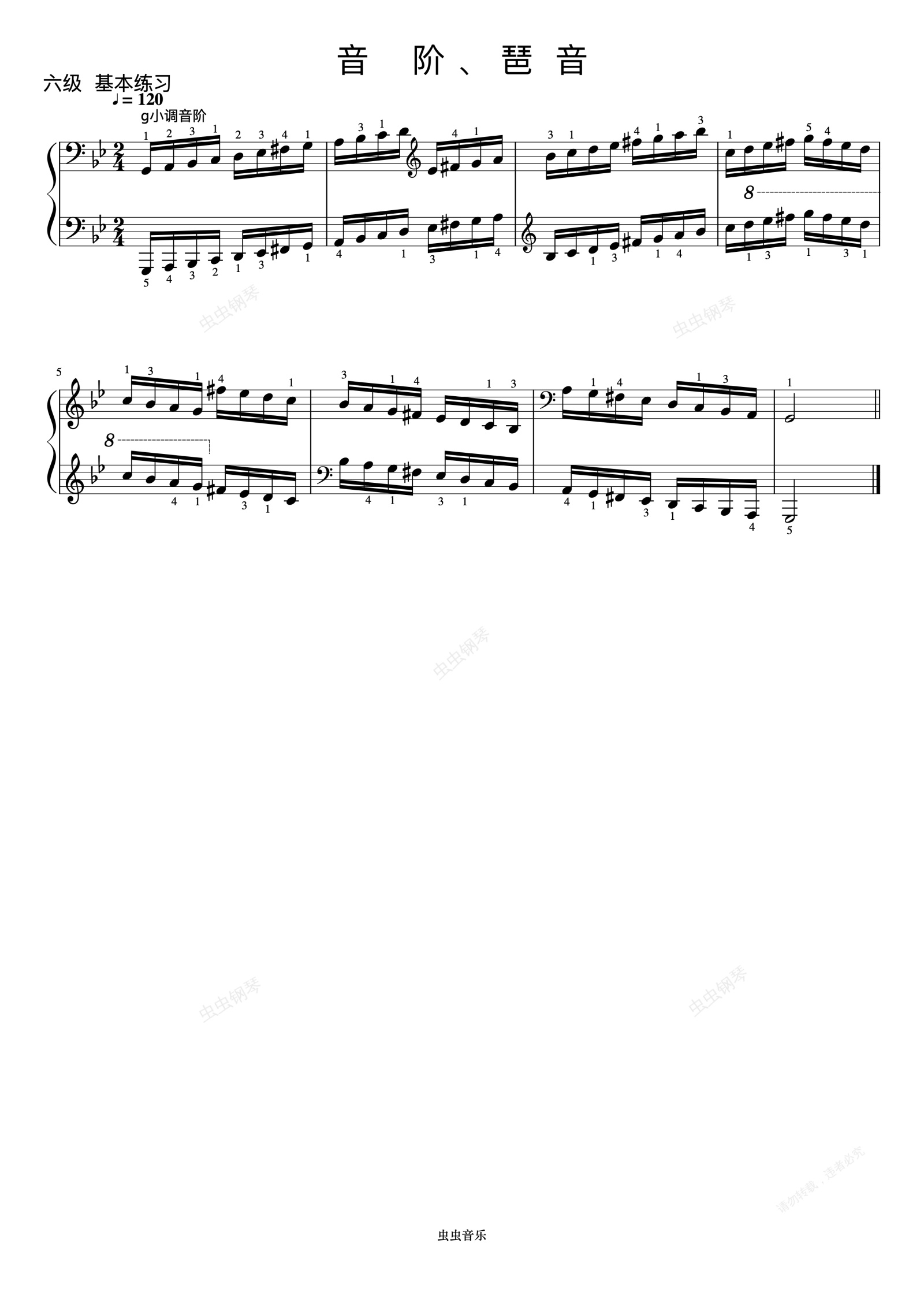 钢琴谱:6级 g小调音阶《中国院钢琴考级曲目》