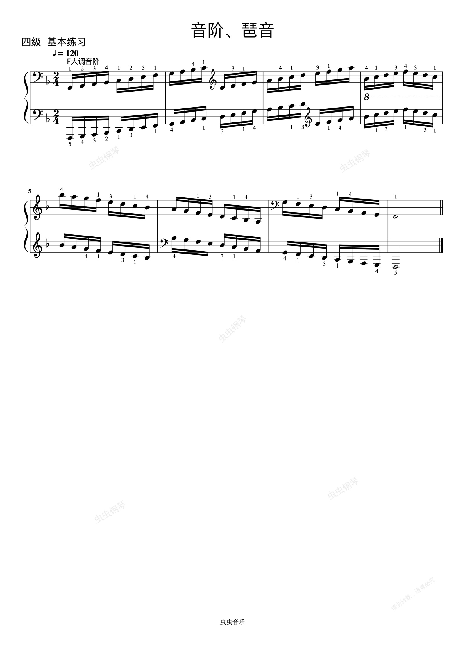 钢琴谱:4级 F大调音阶《中国院钢琴考级曲目》