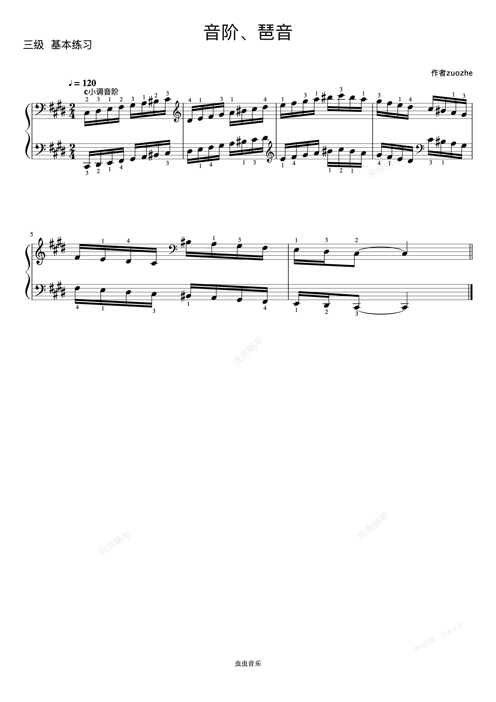 钢琴谱:3级 升c小调音阶《中国院钢琴考级曲目》