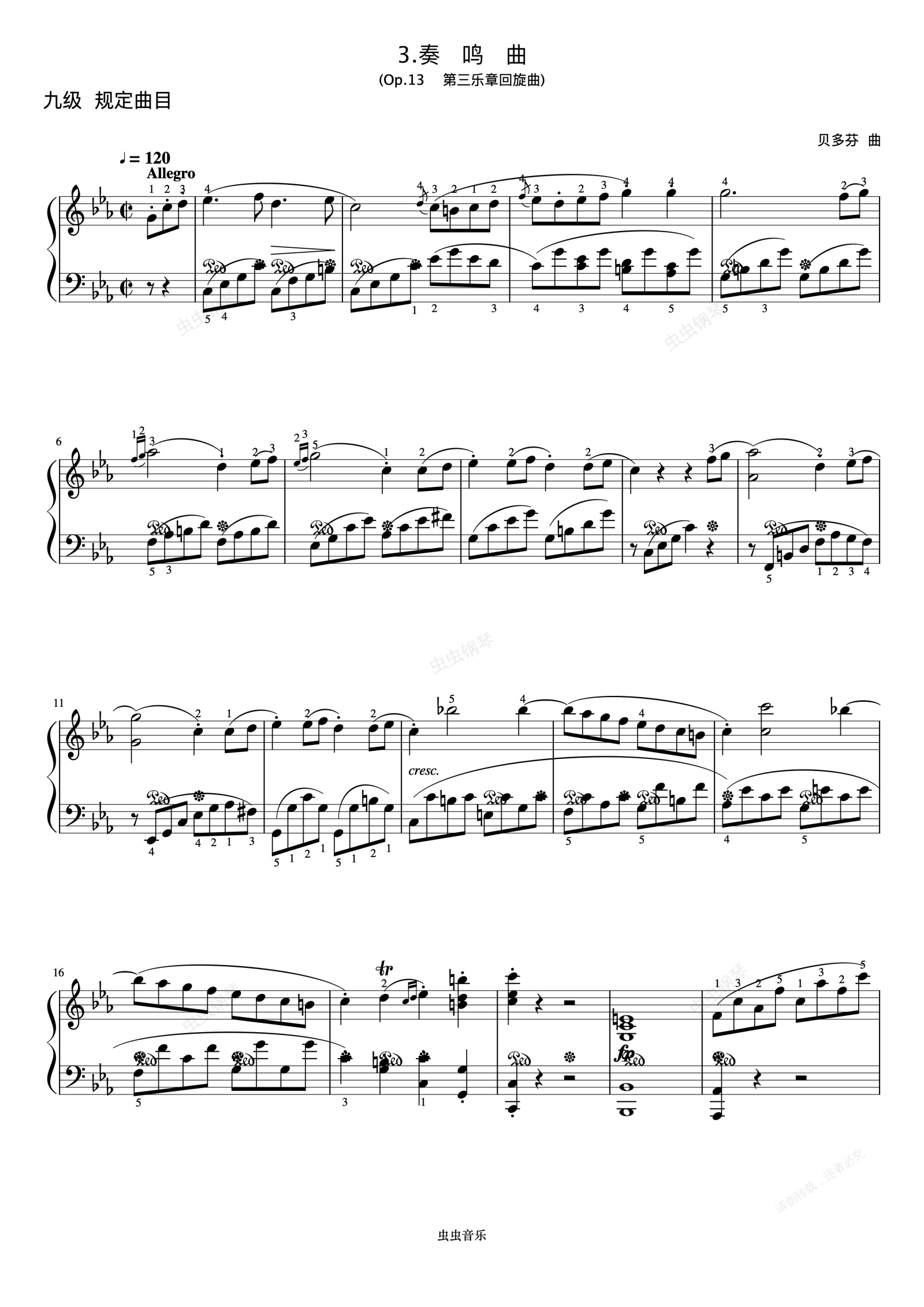 钢琴谱:9级 奏鸣曲(Op.13 第三乐章回旋曲)《中国院钢琴考级曲目》