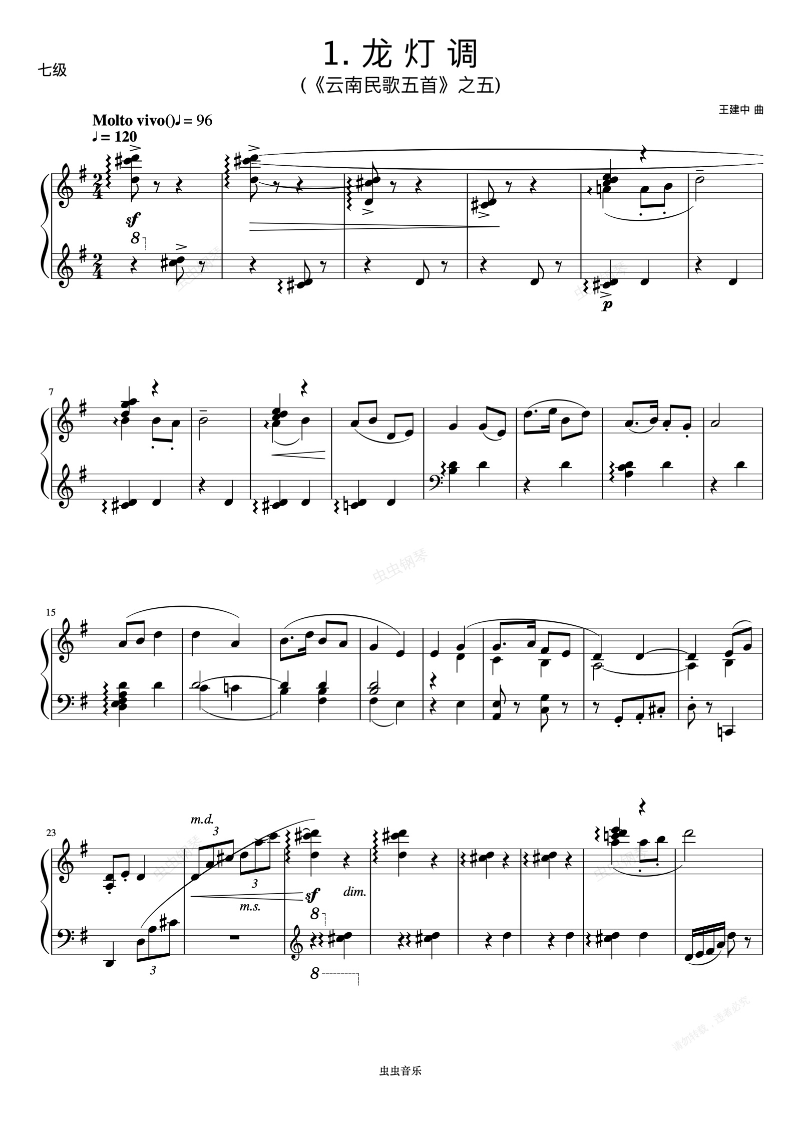 钢琴谱:7级 龙灯调《中国院钢琴考级曲目》