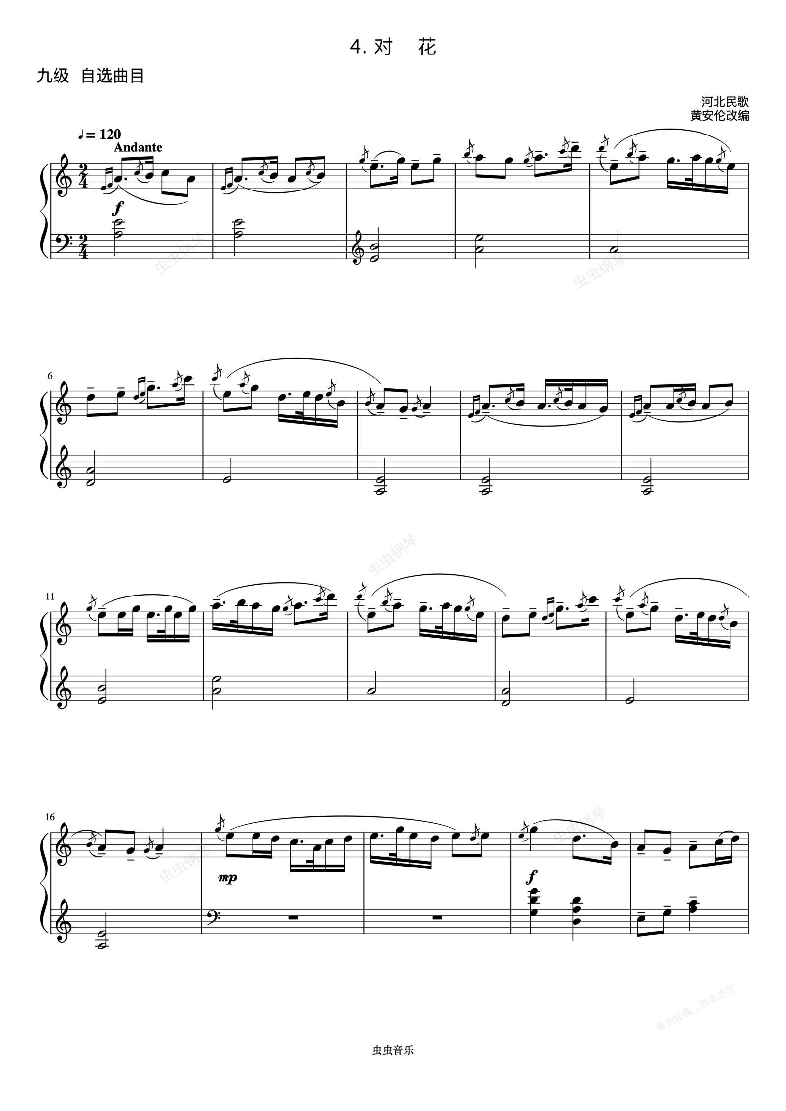 钢琴谱:9级 对花《中国院钢琴考级曲目》