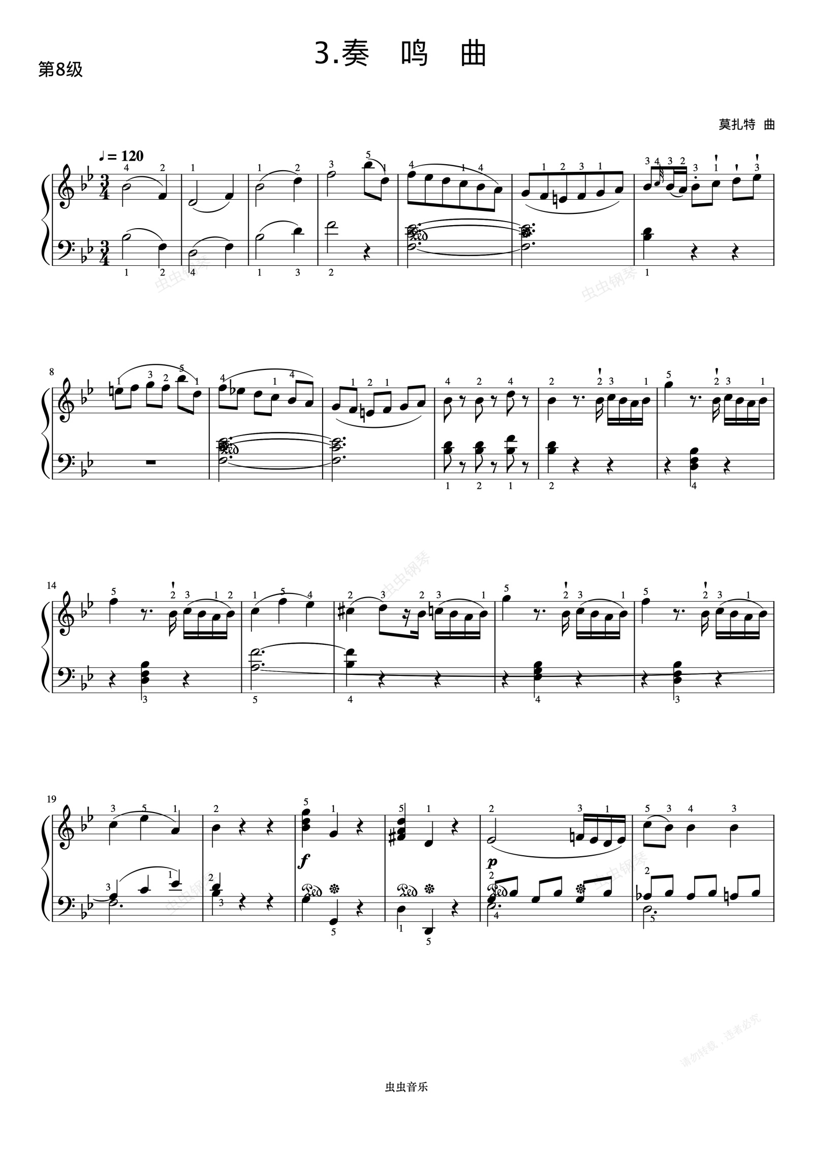 钢琴谱:8级 奏鸣曲(bB大调第一乐章)《中国院钢琴考级曲目》
