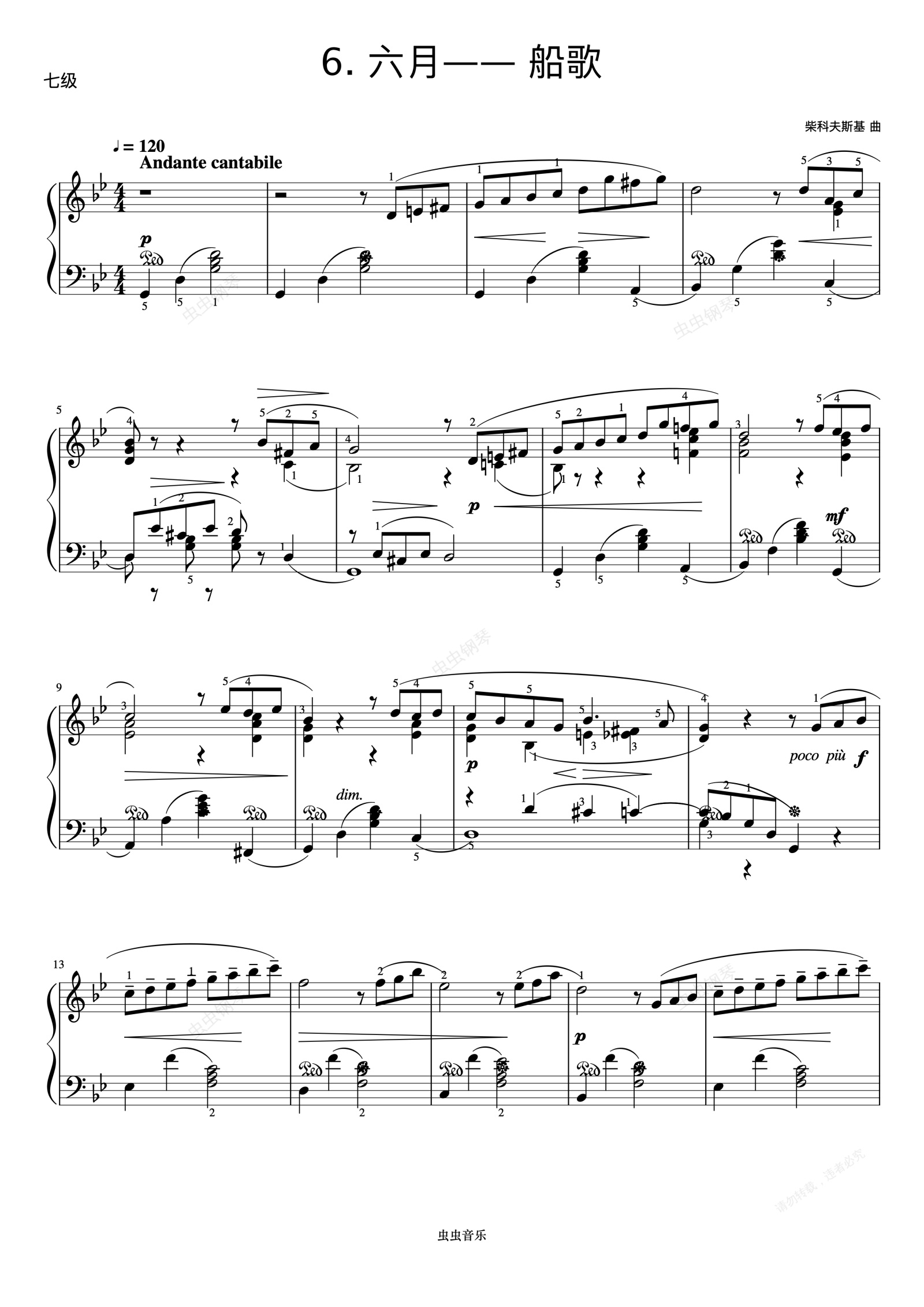 钢琴谱:7级 六月——船歌《中国院钢琴考级曲目》