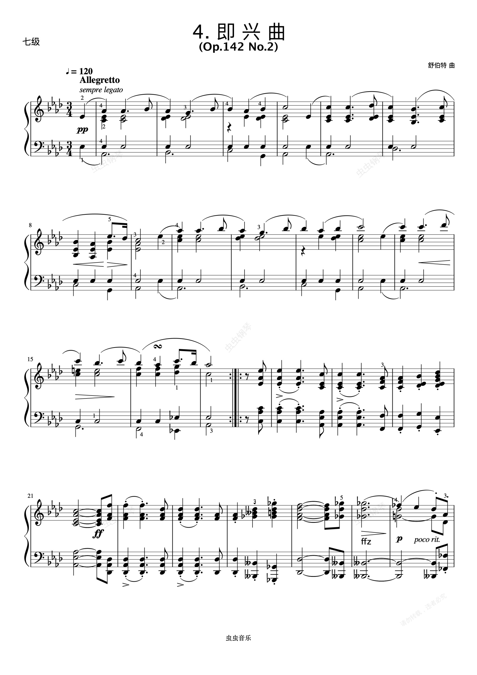 钢琴谱:7级 即兴曲(Op.142 No.2)《中国院钢琴考级曲目》