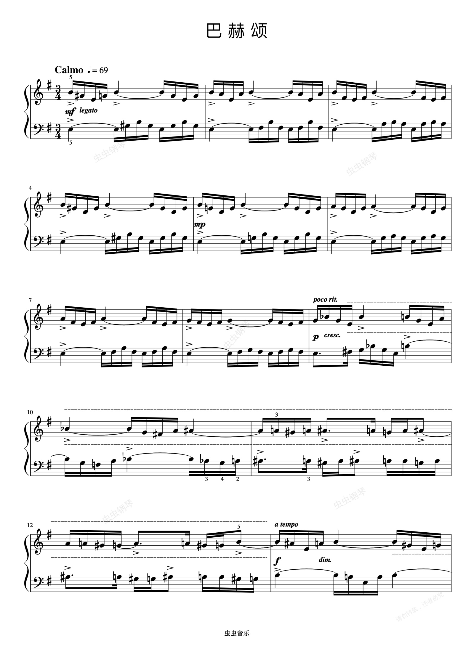 钢琴谱:巴赫颂《巴托克小宇宙钢琴教程3》