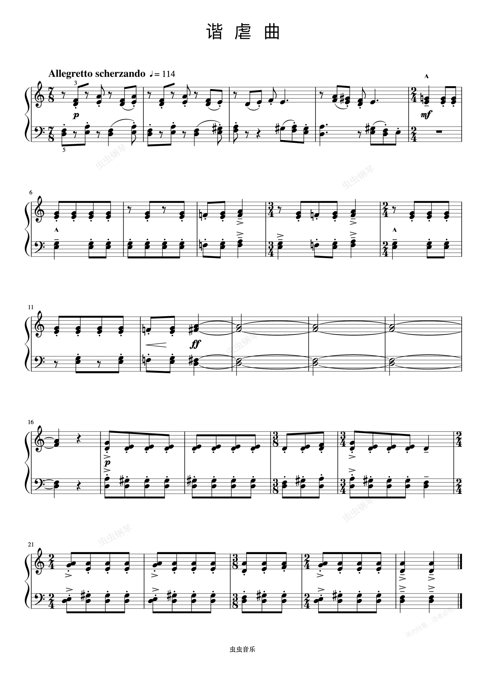 钢琴谱:谐谑曲《巴托克小宇宙钢琴教程3》
