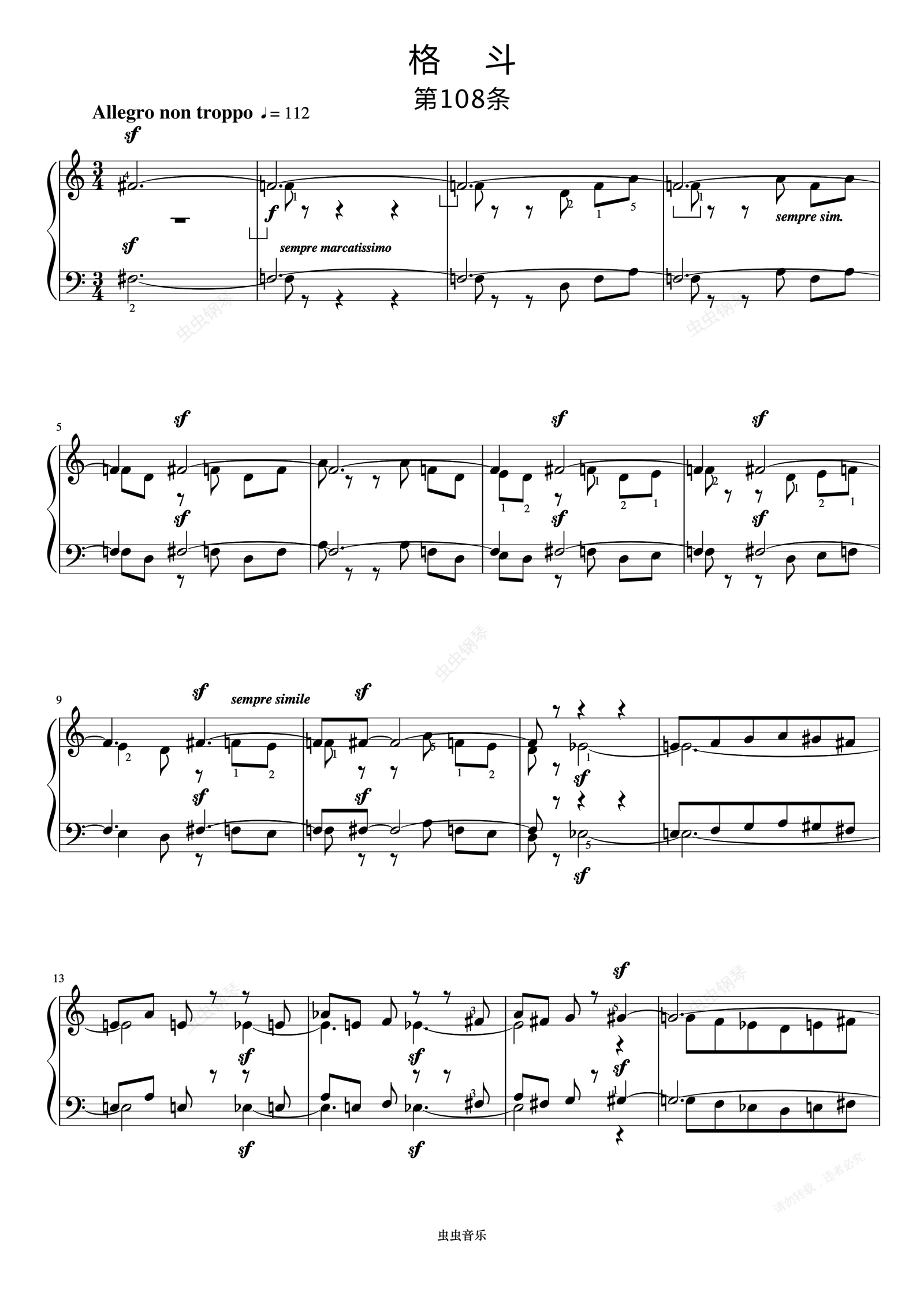 钢琴谱:格斗《巴托克小宇宙钢琴教程4》