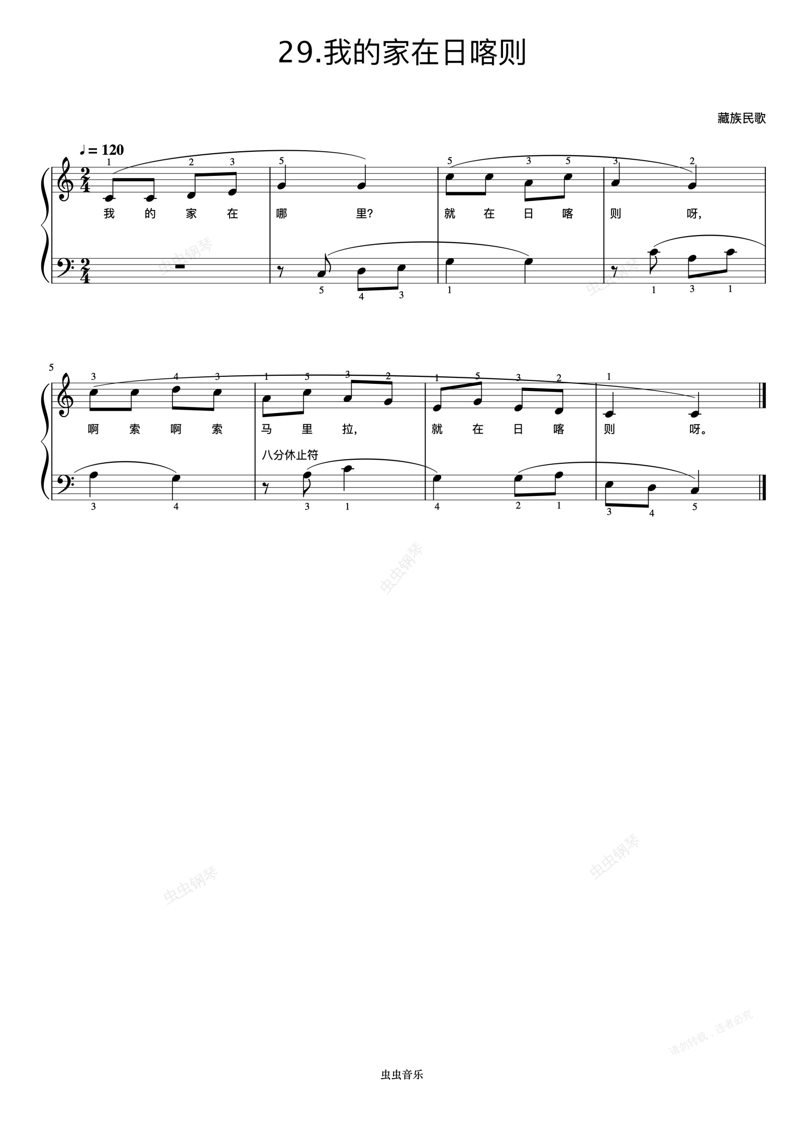 钢琴谱:我的家在日喀则《弹儿歌学钢琴》