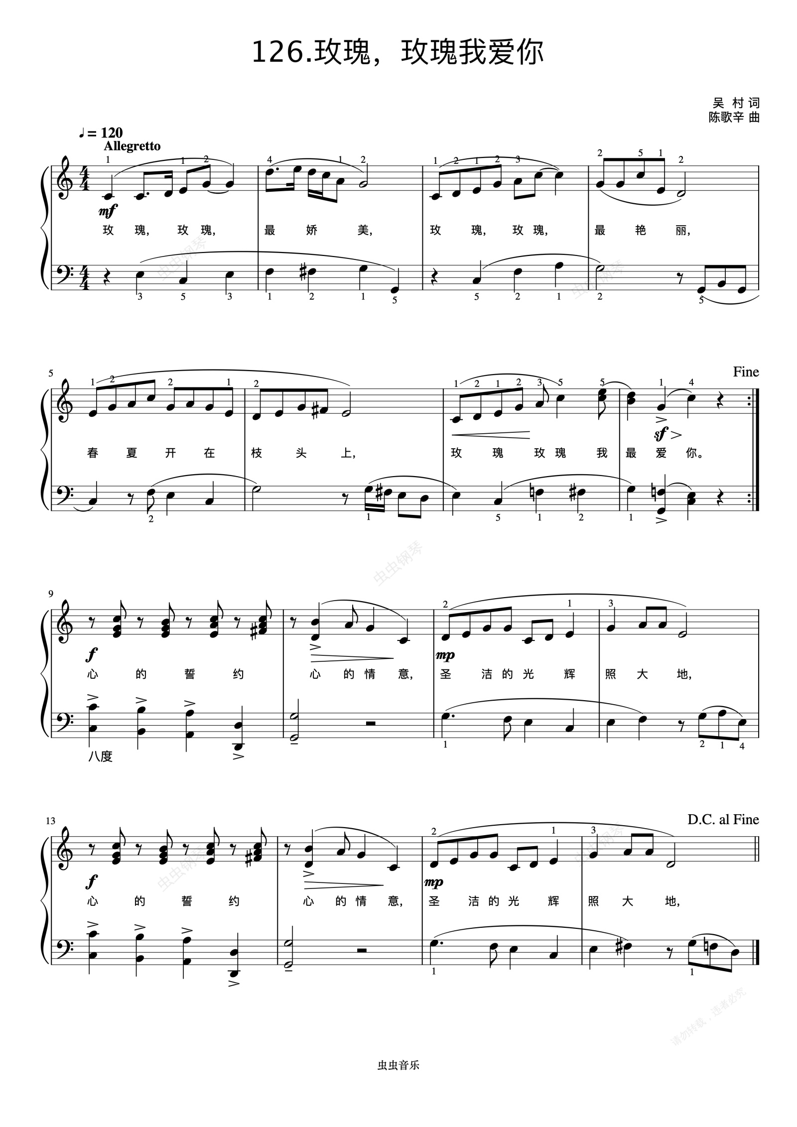 钢琴谱:玫瑰,玫瑰我爱你《弹儿歌学钢琴》