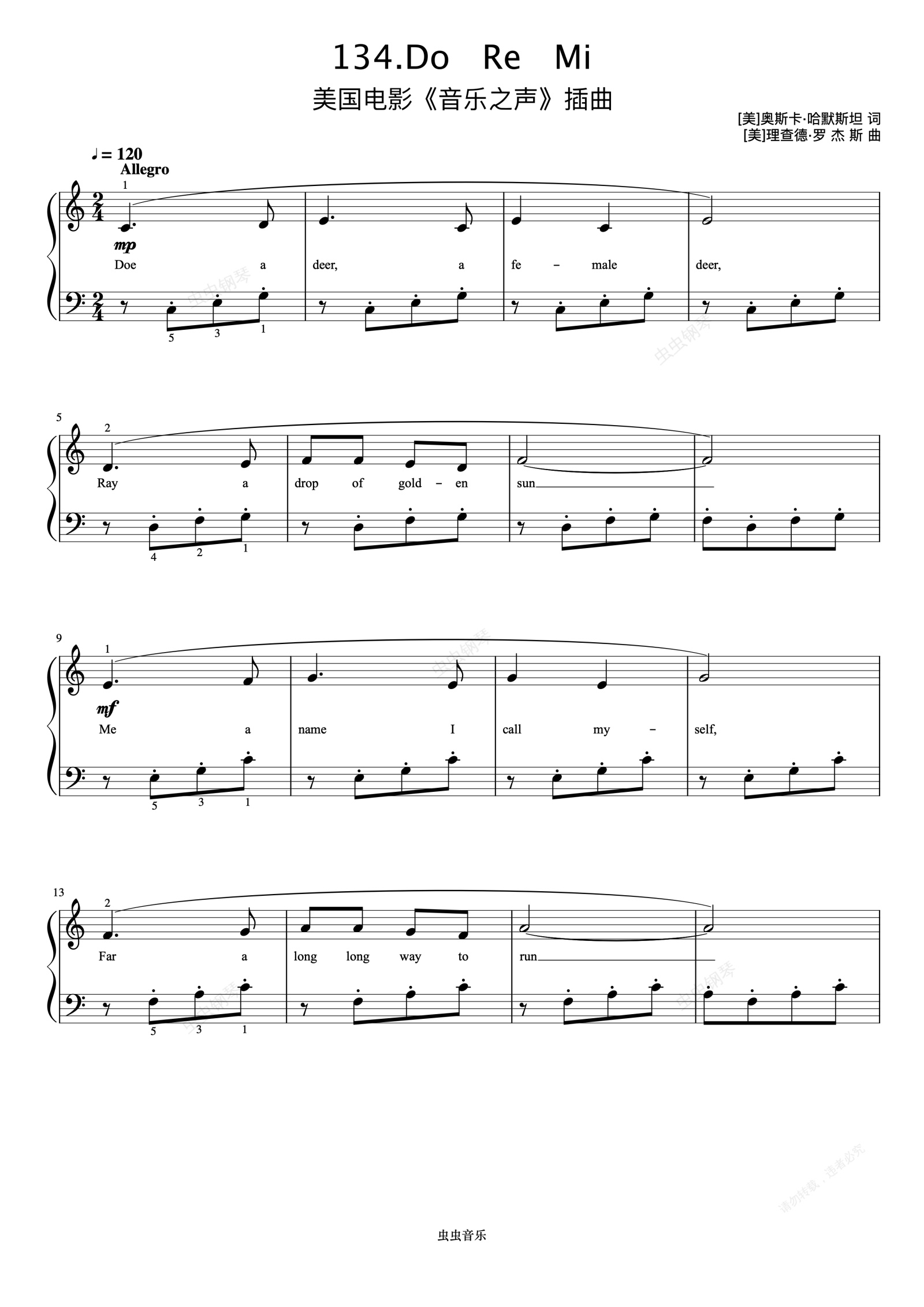 钢琴谱:Do Re Mi《弹儿歌学钢琴》