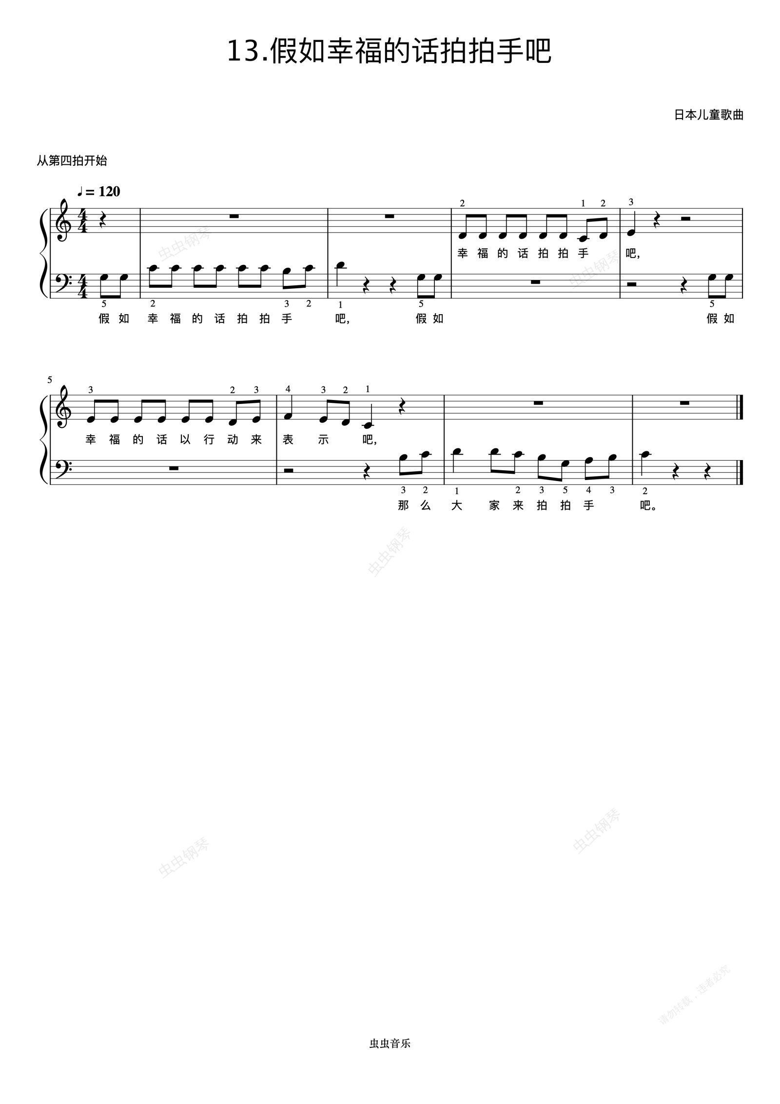 钢琴谱:假如幸福的话拍拍手吧《弹儿歌学钢琴》