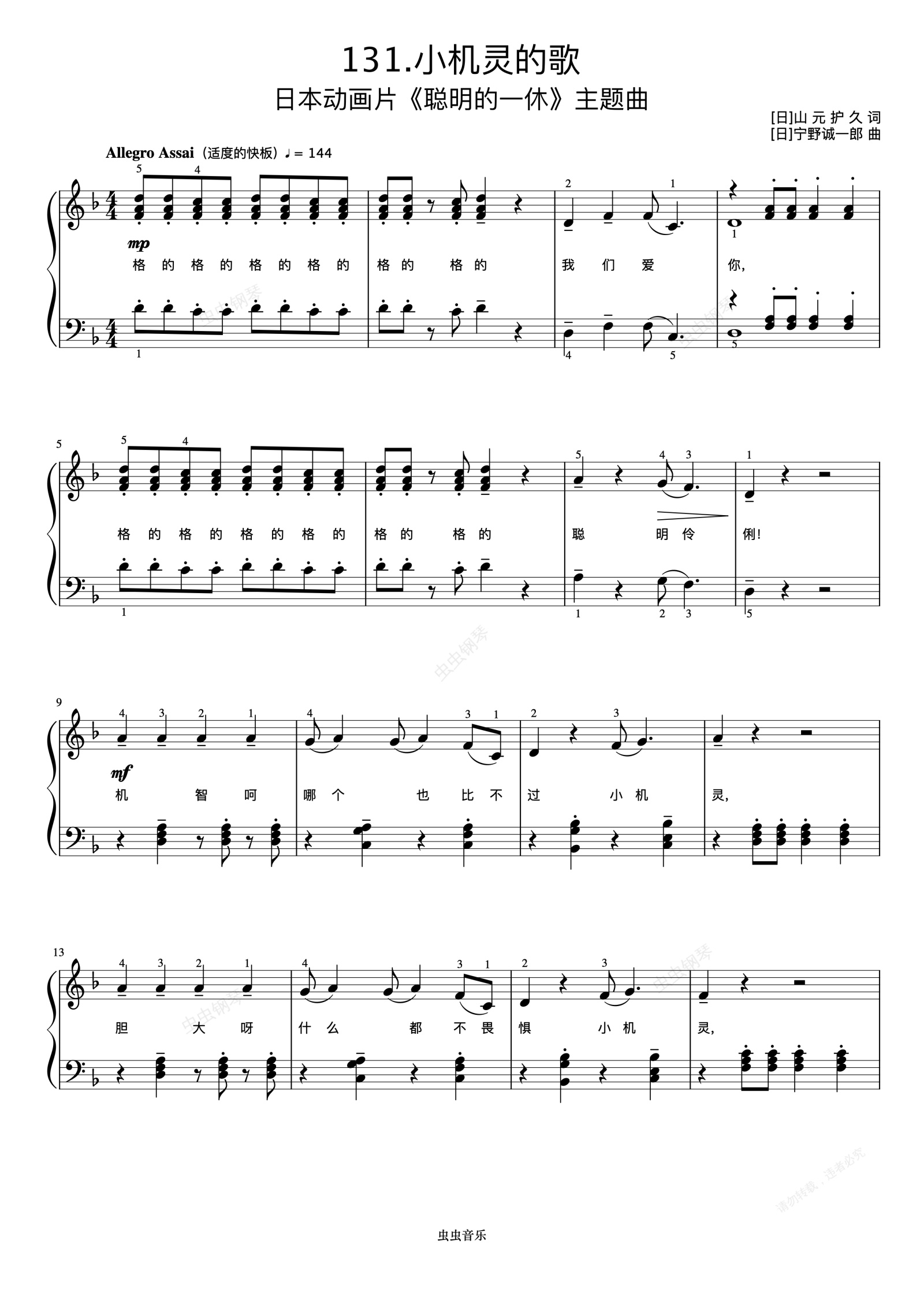 钢琴谱:小机灵的歌《弹儿歌学钢琴》