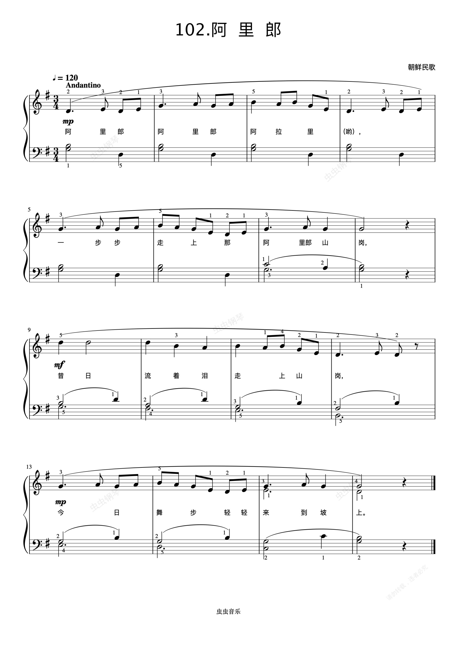 钢琴谱:阿里郎《弹儿歌学钢琴》
