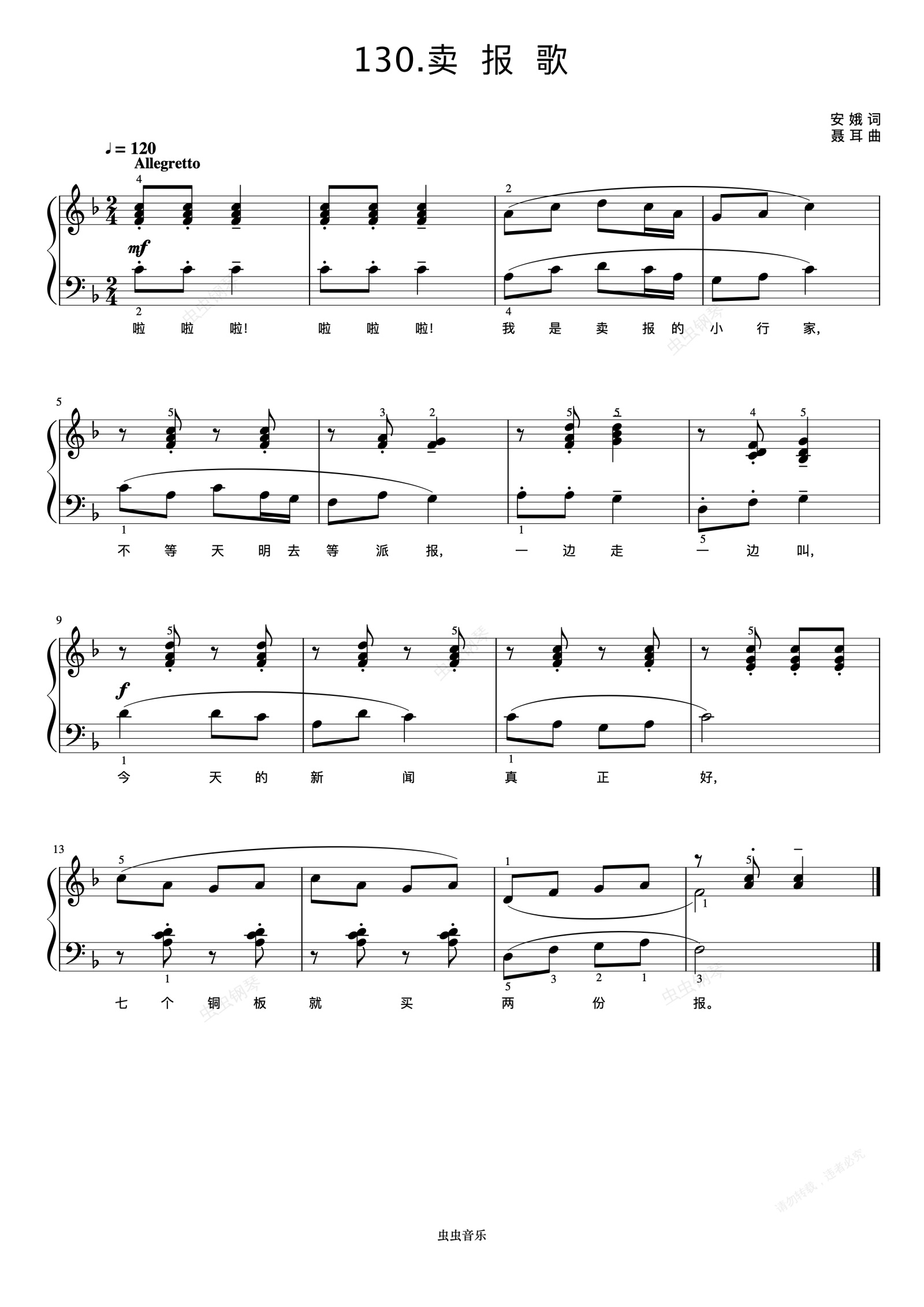 钢琴谱:卖报歌《弹儿歌学钢琴》