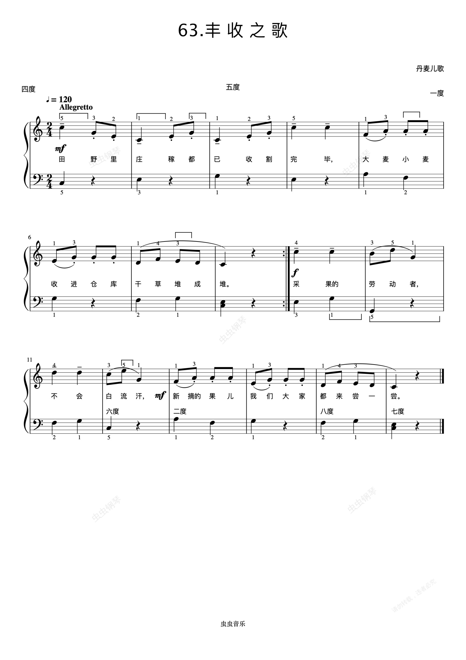钢琴谱:丰收之歌《弹儿歌学钢琴》