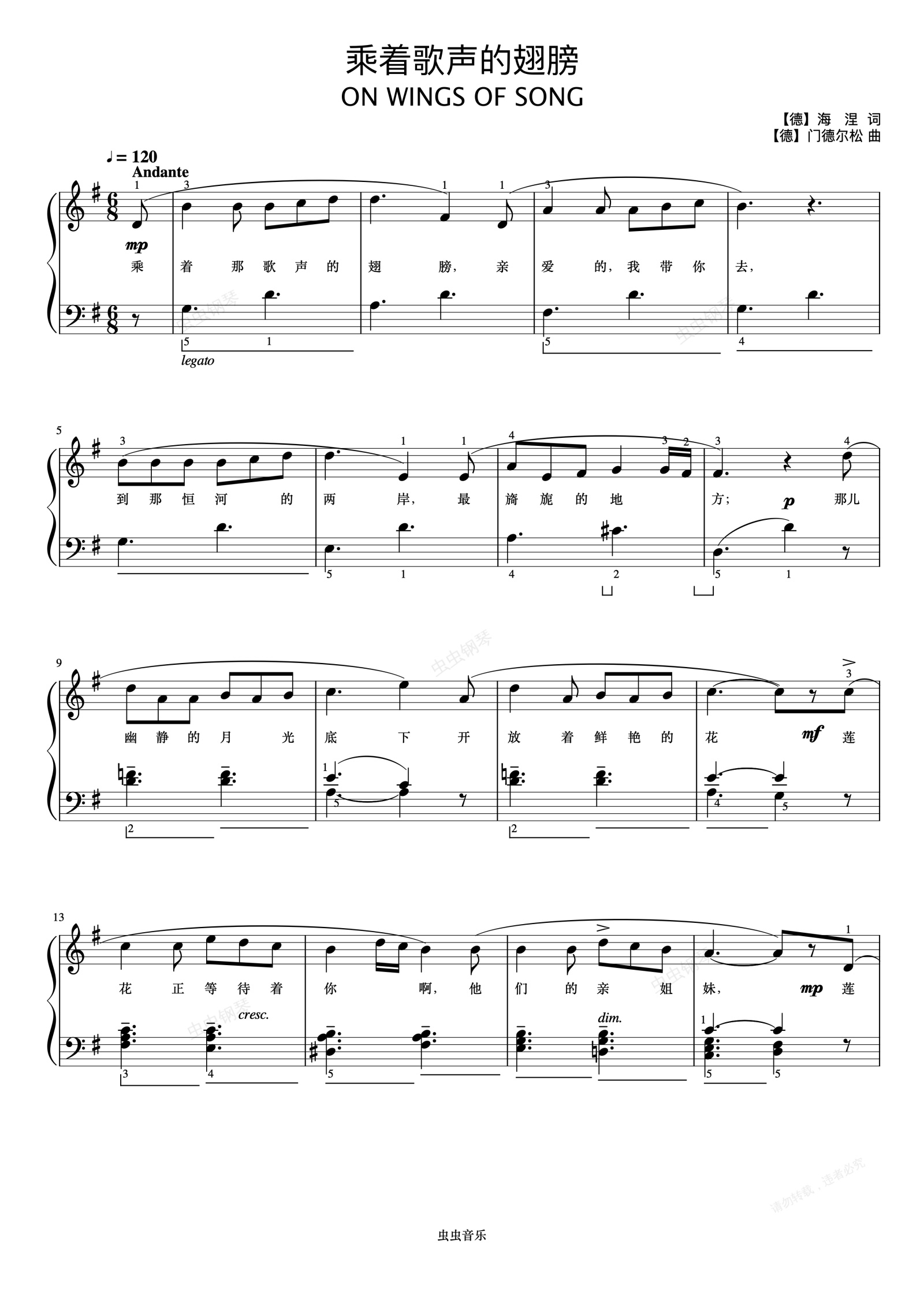 钢琴谱:乘着歌声的翅膀《弹儿歌学钢琴》