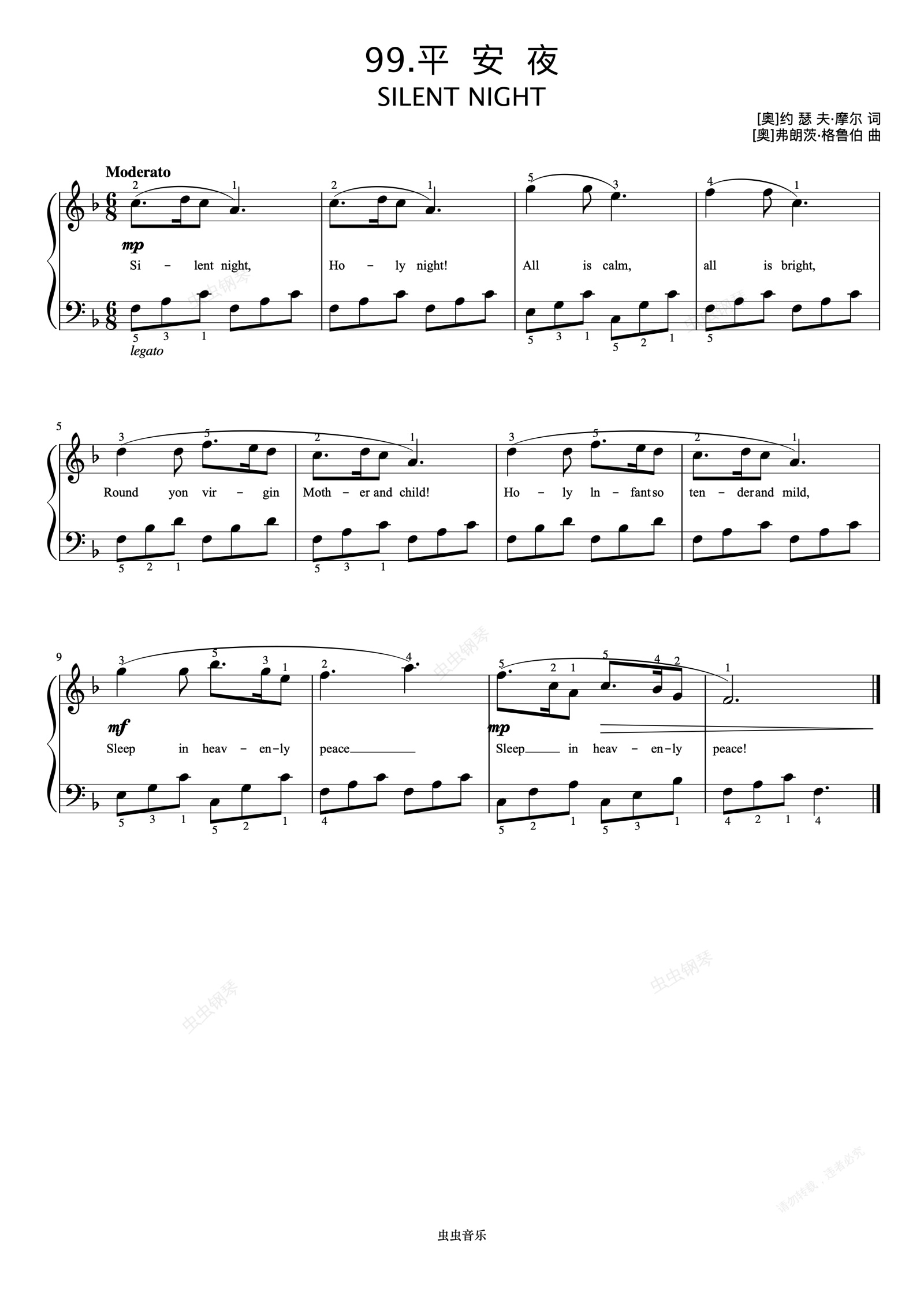 钢琴谱:平安夜《弹儿歌学钢琴》