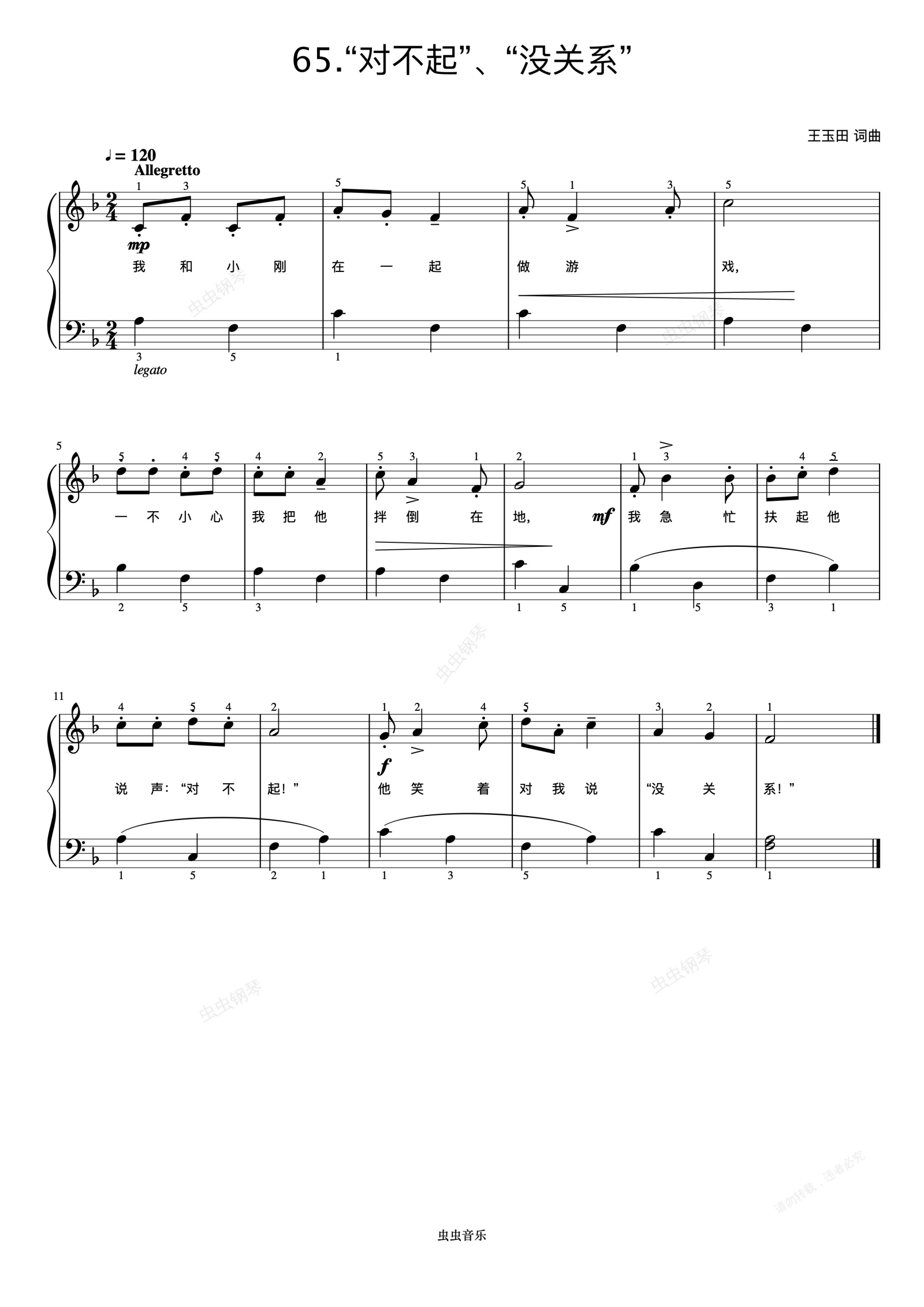 钢琴谱:“对不起”、“没关系”《弹儿歌学钢琴》