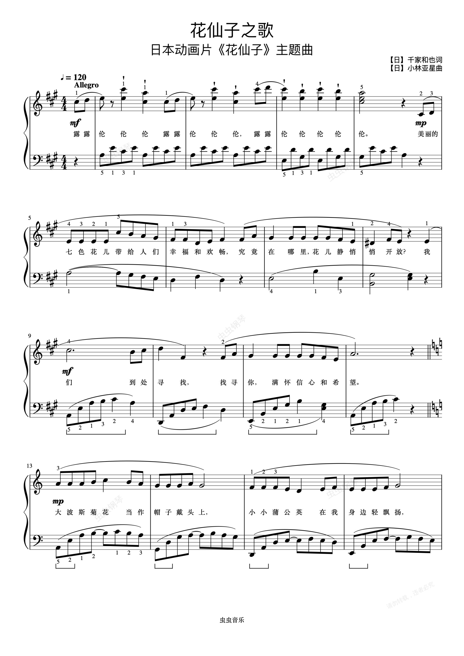 钢琴谱:花仙子之歌《弹儿歌学钢琴》