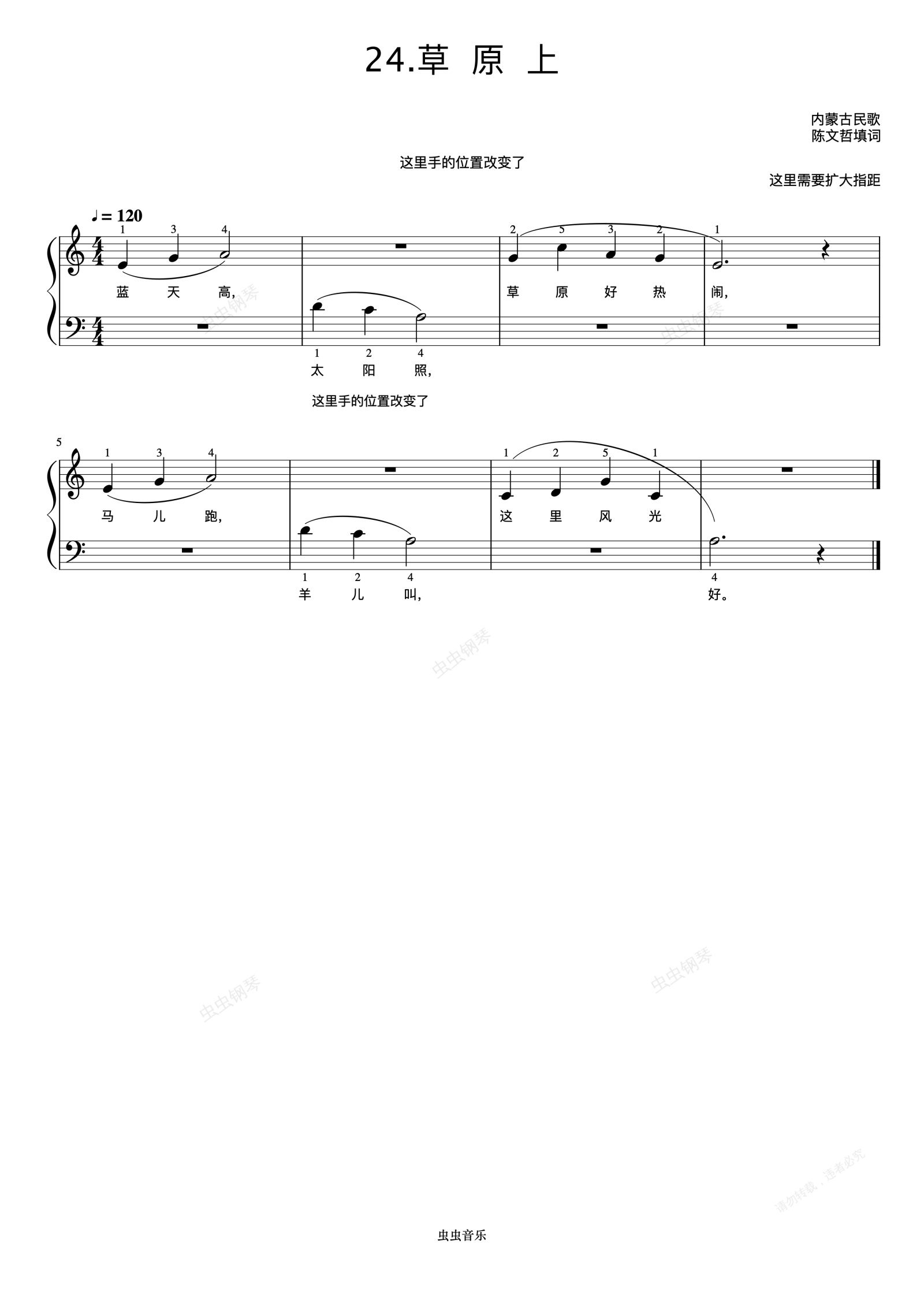 钢琴谱:草原上《弹儿歌学钢琴》
