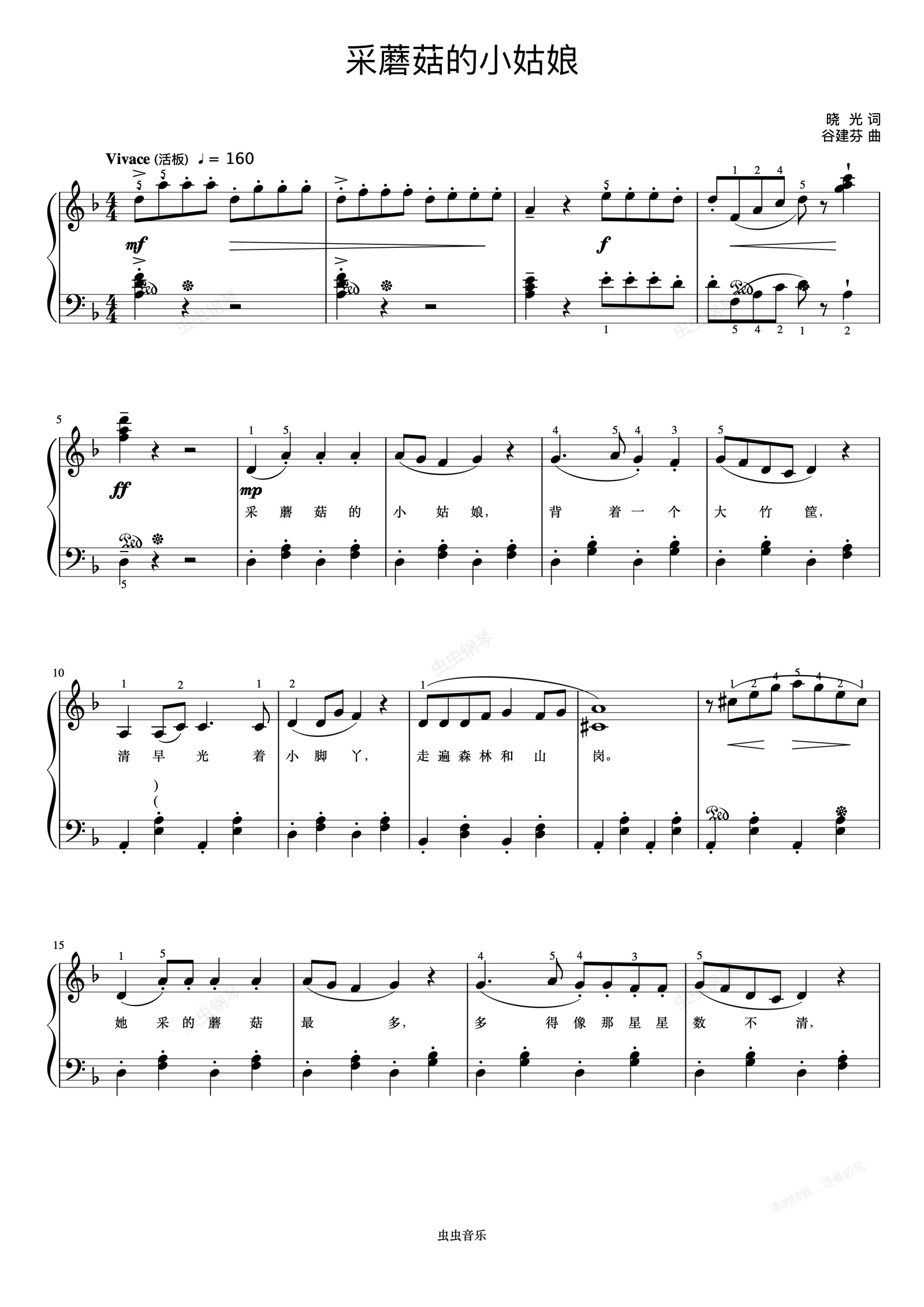 钢琴谱:采蘑菇的小姑娘《弹儿歌学钢琴》