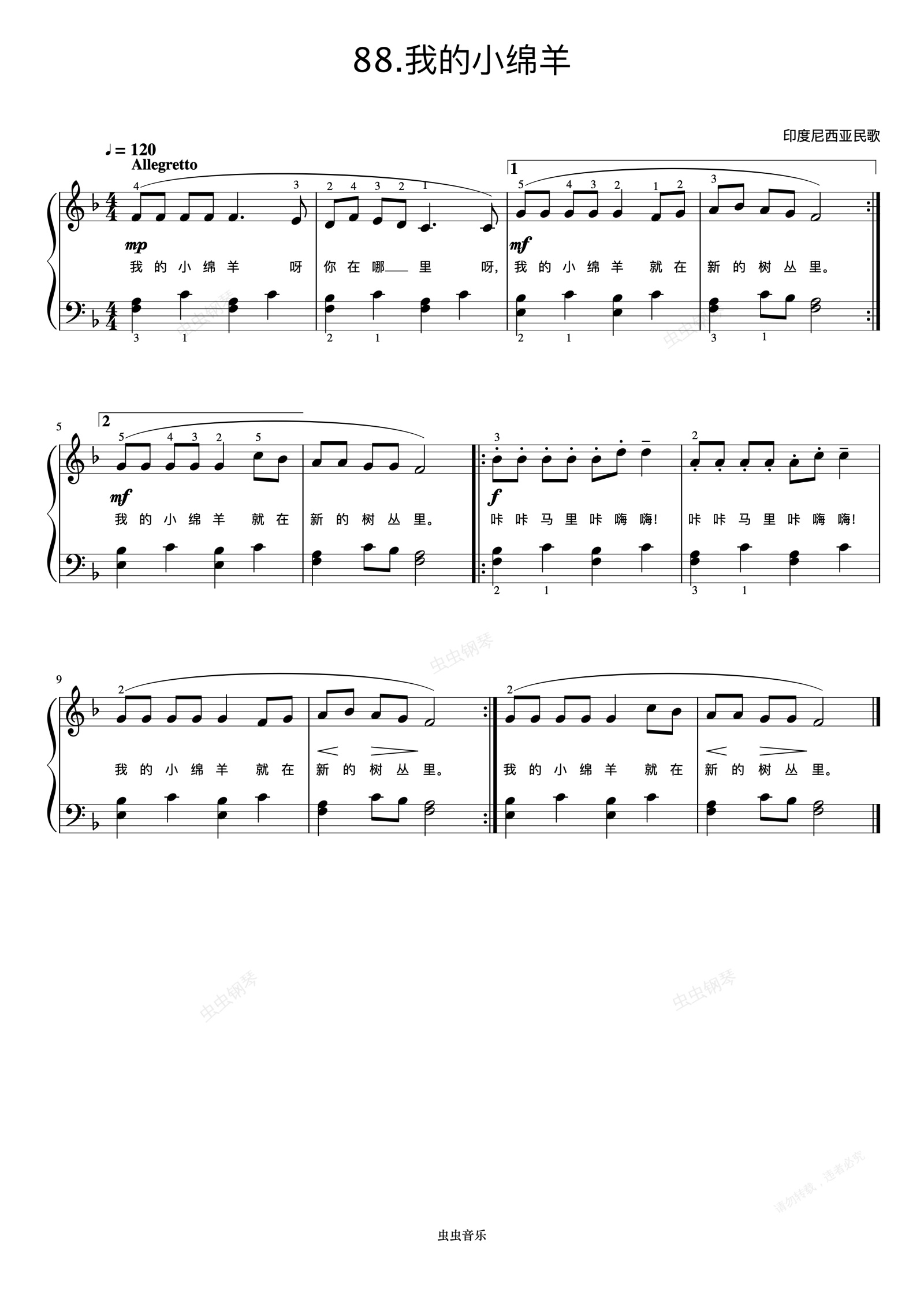 钢琴谱:我的小绵羊《弹儿歌学钢琴》