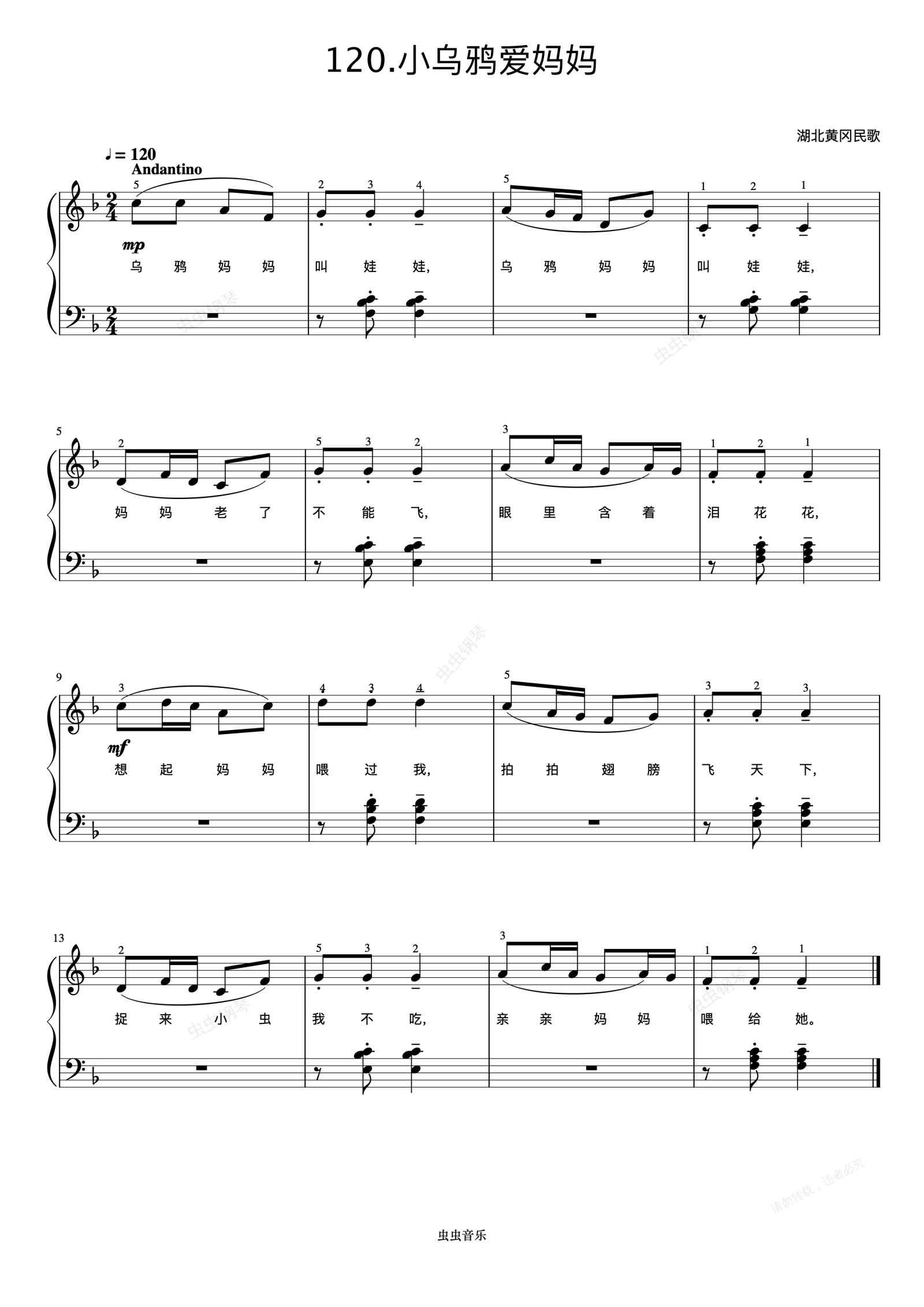 钢琴谱:小乌鸦爱妈妈NO.2《弹儿歌学钢琴》