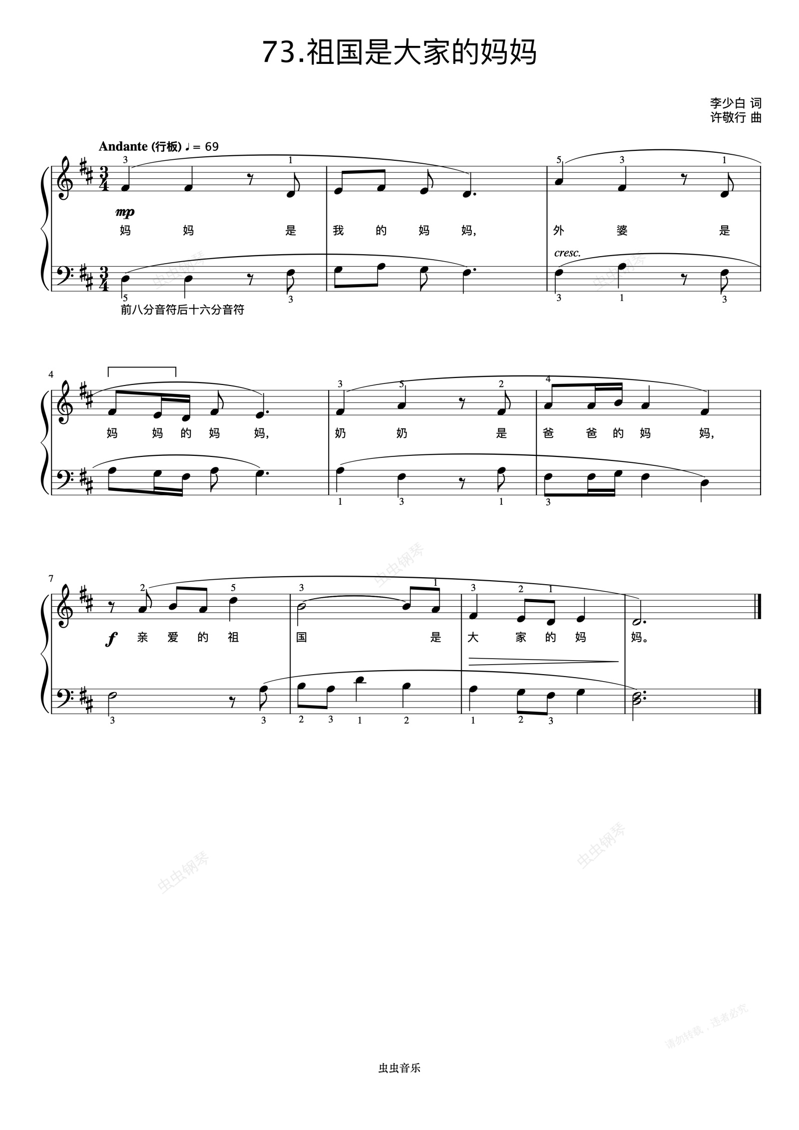 钢琴谱:祖国是大家的妈妈《弹儿歌学钢琴》